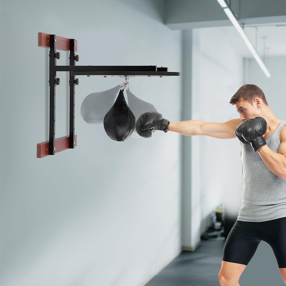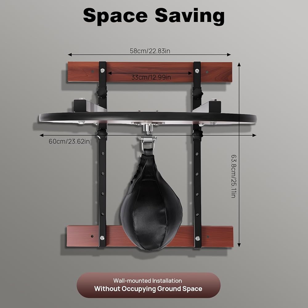 A good piece of fitness equipment can help you have a good figure and a healthy body. This speed bag platform kit adopts high-quality materials and exquisite craftsmanship to ensure good performance. The wall-mounted design saves more space. The premium speed bag can rotate flexibly 360 °, helping you exercise your arm muscles and shoulders, improve hand-eye coordination, and achieve lightning-fast punching speed.