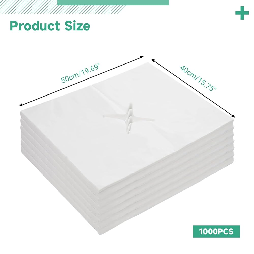 ضمان الكمية الكبيرة: يتضمن 1000 غطاء حامل للاستعمال مرة واحدة بمقاس 19.7 × 15.8 بوصة؛ كافية للعمليات اليومية والاستبدالات المتكررة؛ ملاءمة عالمية تناسب معظم طاولات التدليك والمقاعد وإعدادات السبا