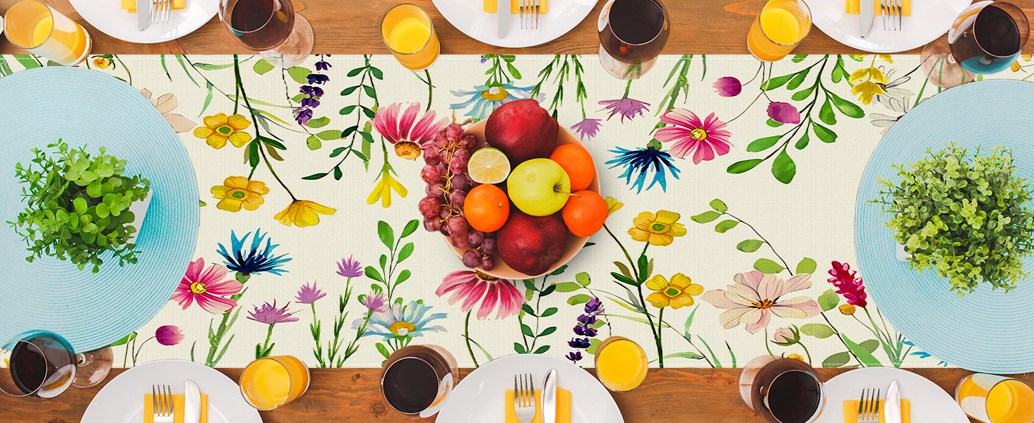 [مقاس مفرش طاولة الربيع]: مفارش طاولة العطلات الخاصة بنا لتزيين المنزل الربيعي بمقاس 13 × 72 بوصة (33 × 183 سم)، مناسبة لطاولة يمكنها استيعاب 4-6 أشخاص، وتناسب الطاولات المستطيلة والمستديرة والجزر ووحدات التحكم بشكل مثالي.
