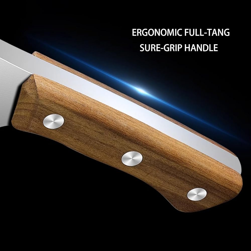 • 【مقبض مريح بالكامل】تم تشكيل الشفرة والمقبض كقطعة واحدة، معززة بثلاثة مسامير لمتانة لا مثيل لها. يوفر المقبض المصنوع من خشب الساج الطبيعي مقاس 5.7 بوصة قبضة آمنة ومقاومة للانزلاق، مما يضمن الثبات أثناء المهام الصعبة. يوفر منحنى مريح الراحة والتحكم للاستخدام الممتد. مقبض مريح وأداء قطع ضخم لا مثيل له، يجعل التقطيع أكثر كفاءة وسهولة.