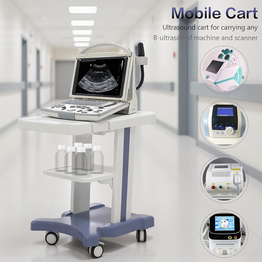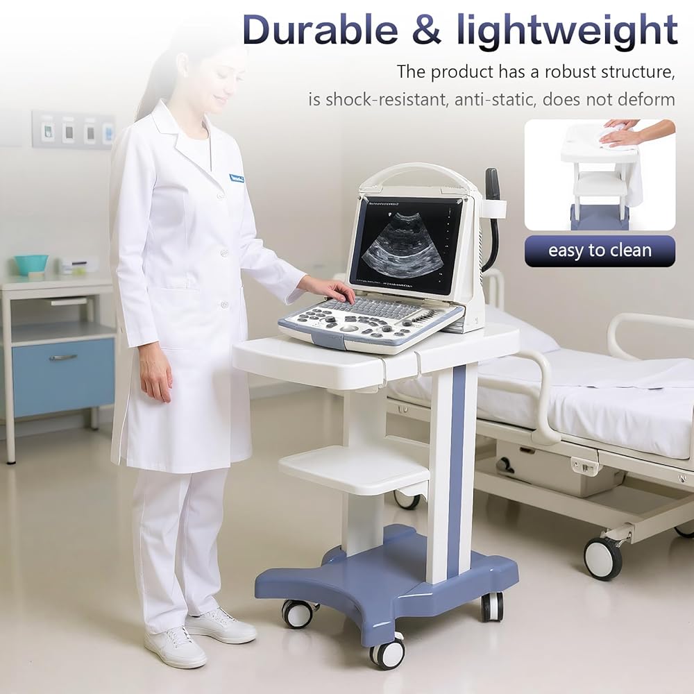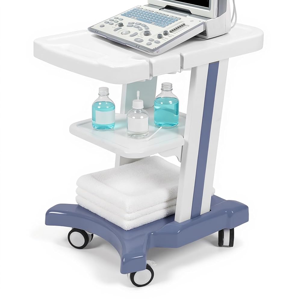 • Superior Materials: Utilizing ABS plastic, this mobile ultrasound cart combines strength and lightness, ensuring easy maintenance. It resists shocks, prevents static build-up, and retains its shape over time.