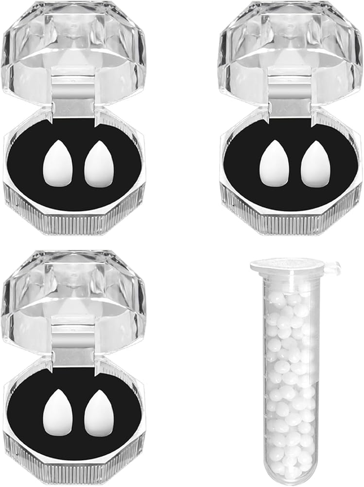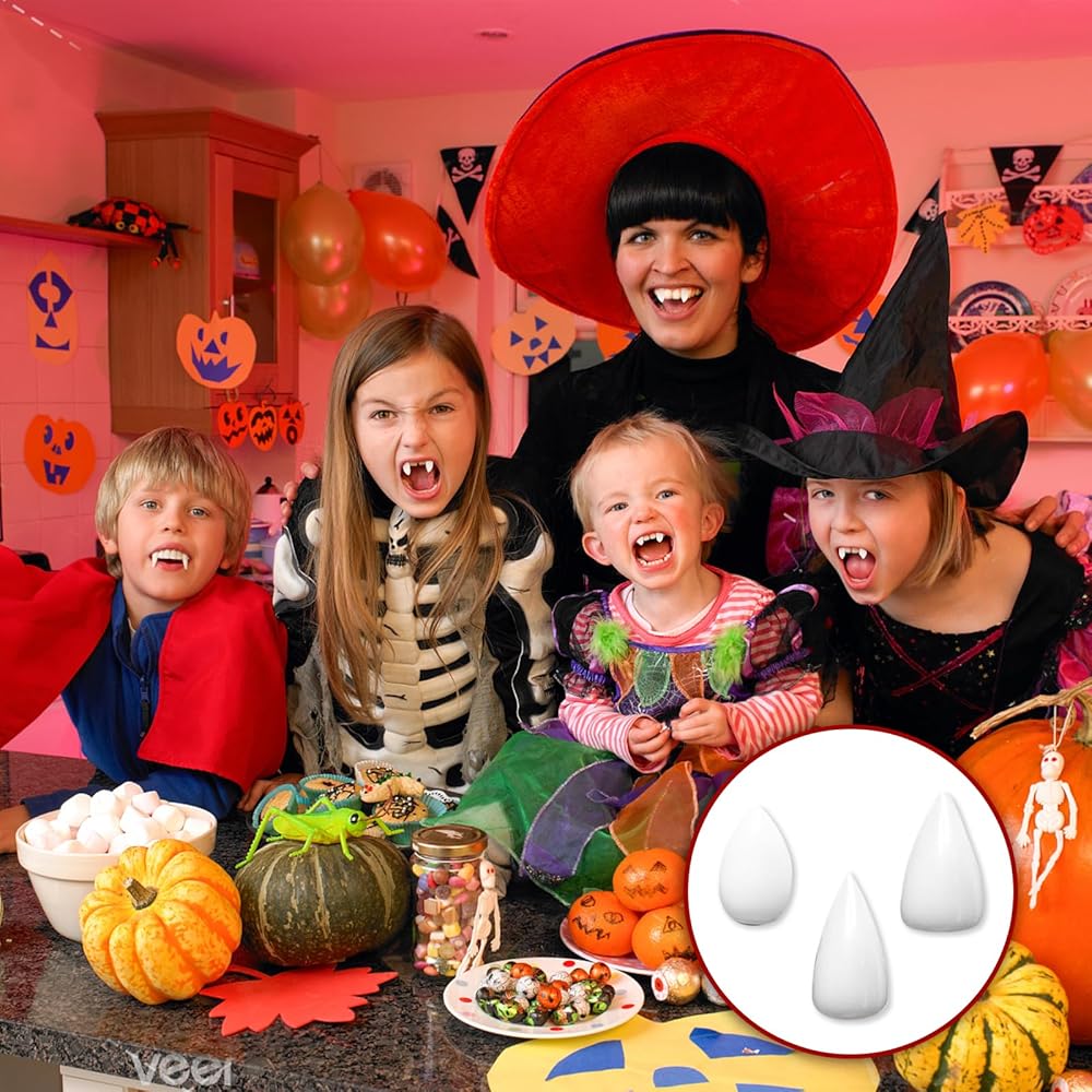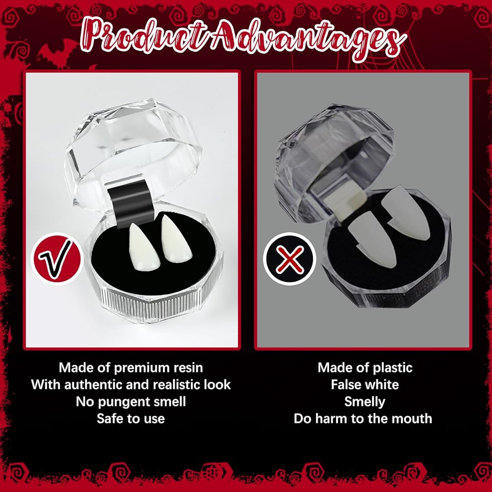 13mm/ 15mm/ 17mm for option, coming with 1 tube of teeth pellets adhesive, for both kids and adults, get rid of worries about your vampire teeth falling out or shifting.