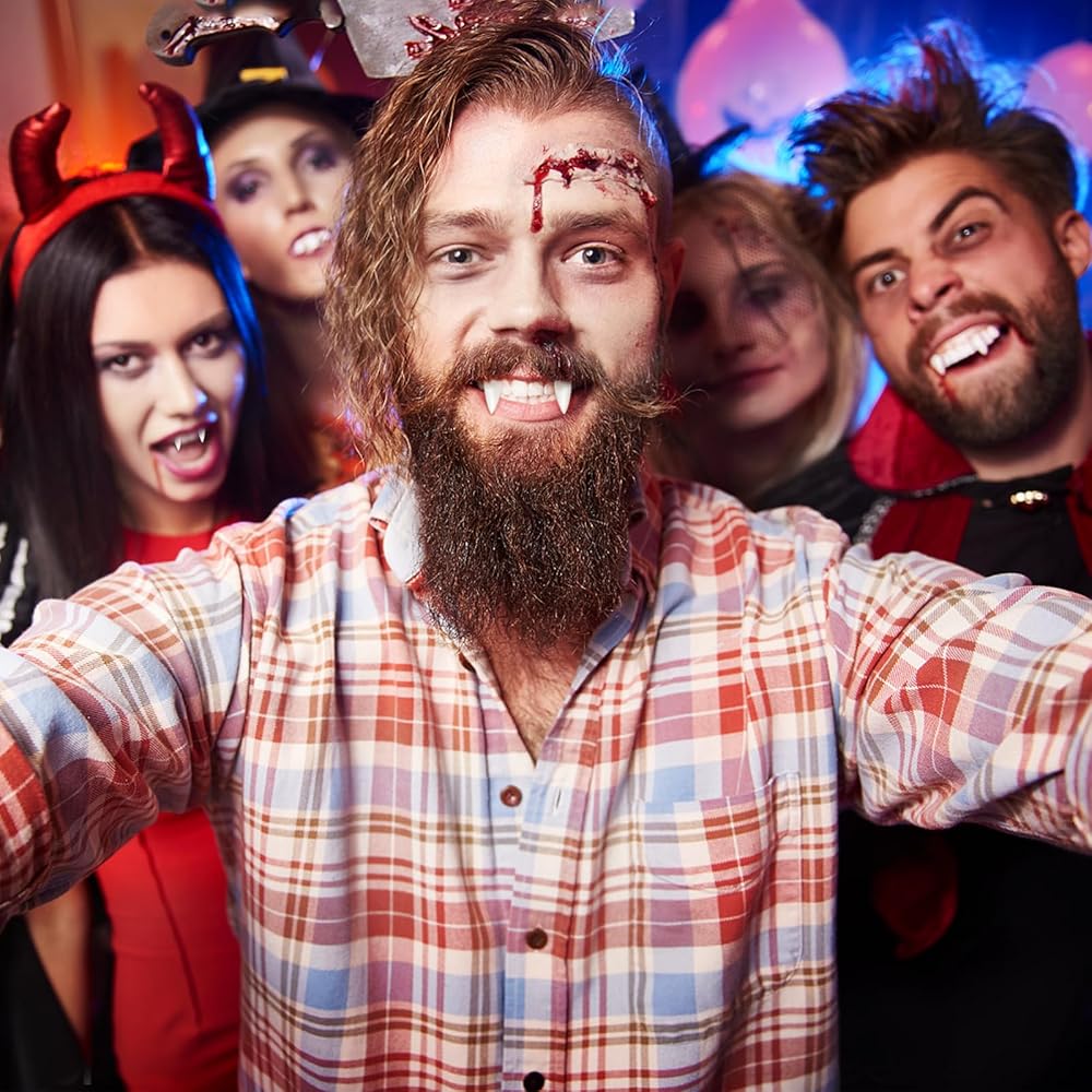 The vampire fangs are made of premium resin, safe to use, lightweight, with authentic and realistic look, serving for many times, great vampire costume accessories for Halloween or other parties.