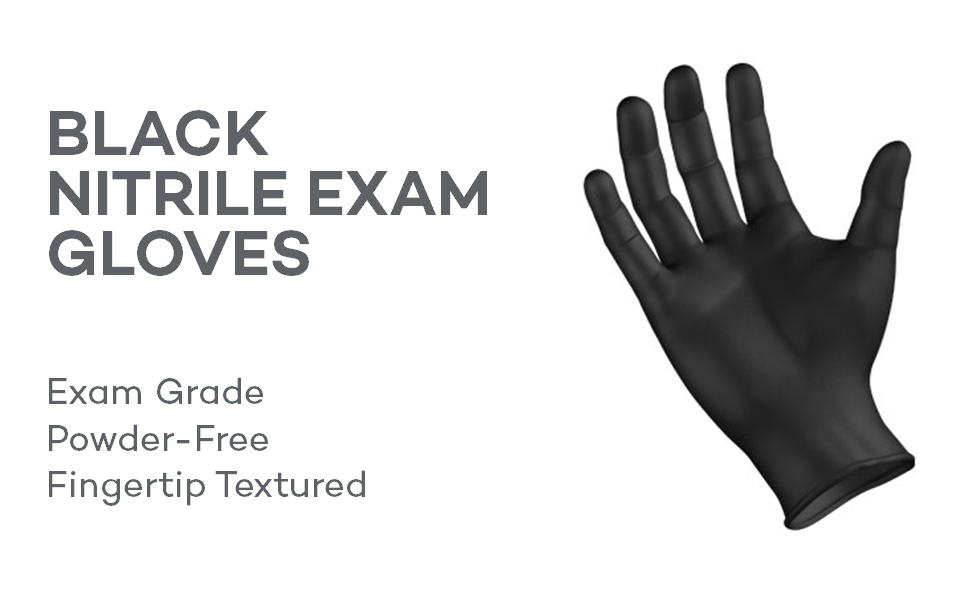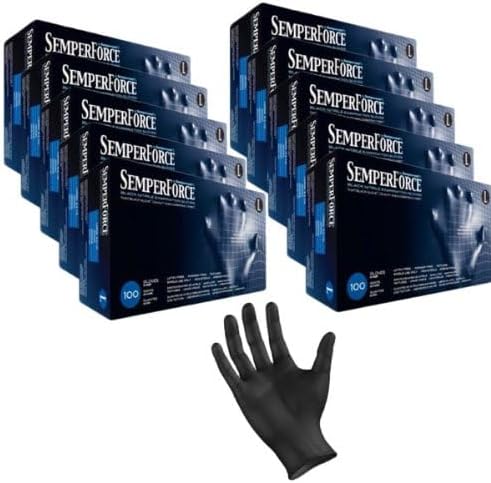 قفازات وشم من النتريل الأسود، خالية من البودرة، خالية من اللاتكس، قوة سيمبيرفورس، حجم 100/صندوق كبير (1000، كبير)
