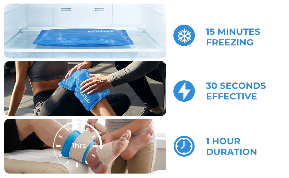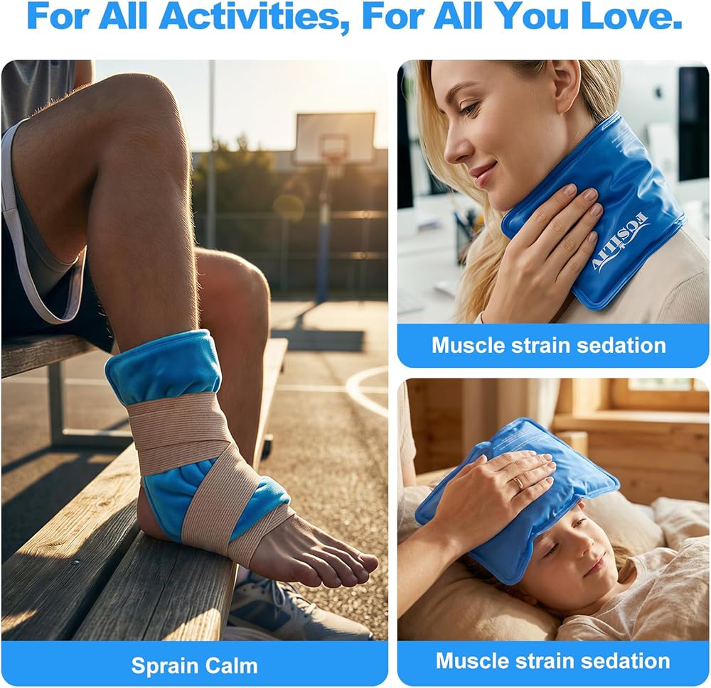 FLEXIBLE WHEN FROZEN FOR FULL CONTOUR FIT - Unlike hard ice blocks, our cold compress remains pliable straight from the freezer. It easily molds to knees, ankles, hips, and other joints for complete, comfortable coverage. This flexible ice pack ensures targeted application to help alleviate muscle aches, bruises, and discomfort.