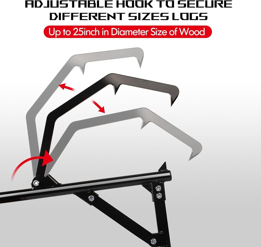 رافع سجل Timberjack مقاس 50.9 بوصة، خطاف غير قابل للتعديل لأسطوانة السجل، أدوات تسجيل فولاذية شديدة التحمل، مقبس سجل لدحرجة السجلات حتى 25 بوصة بقطر