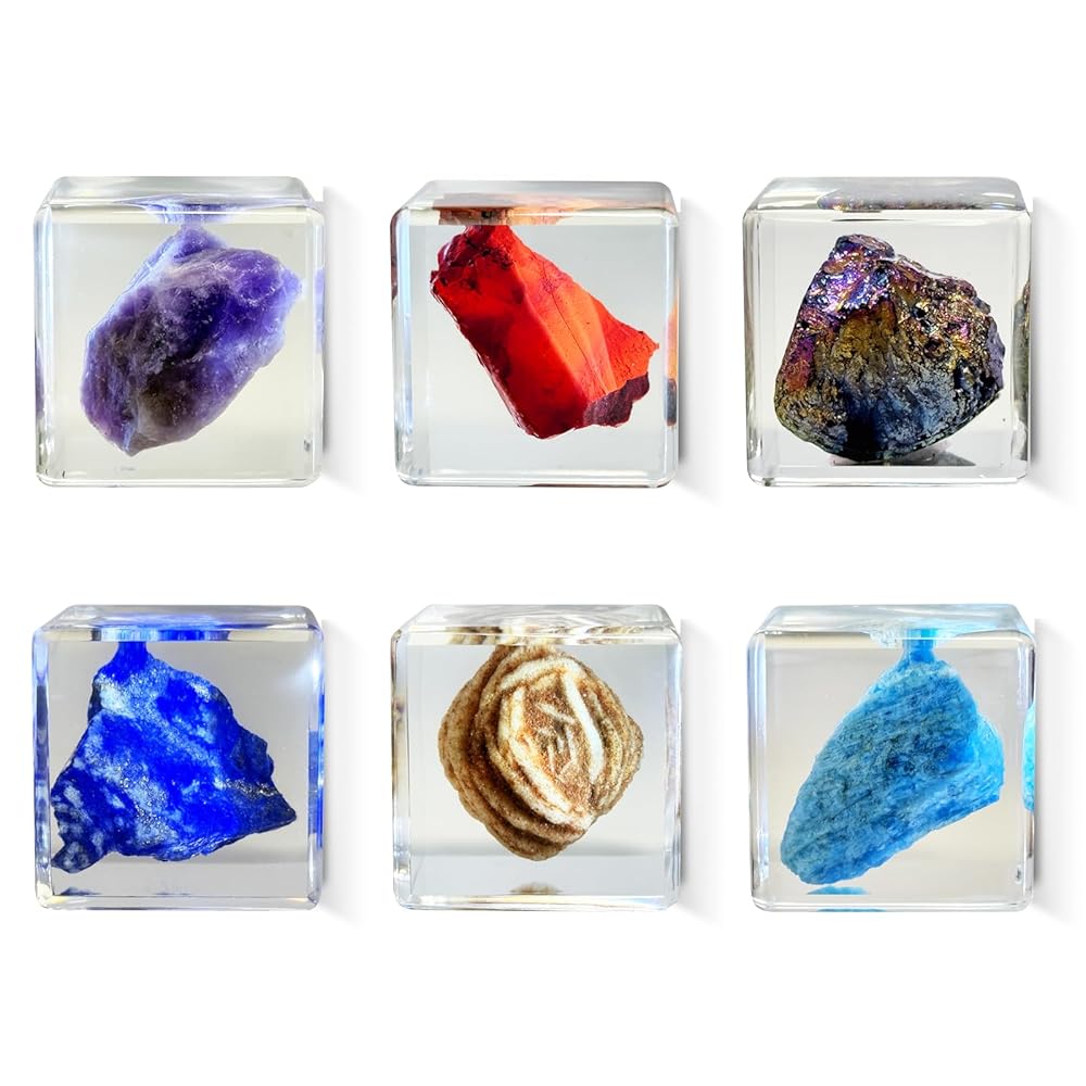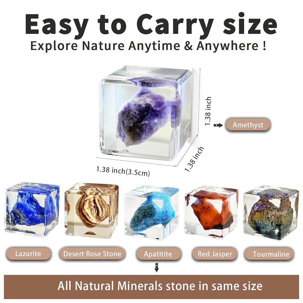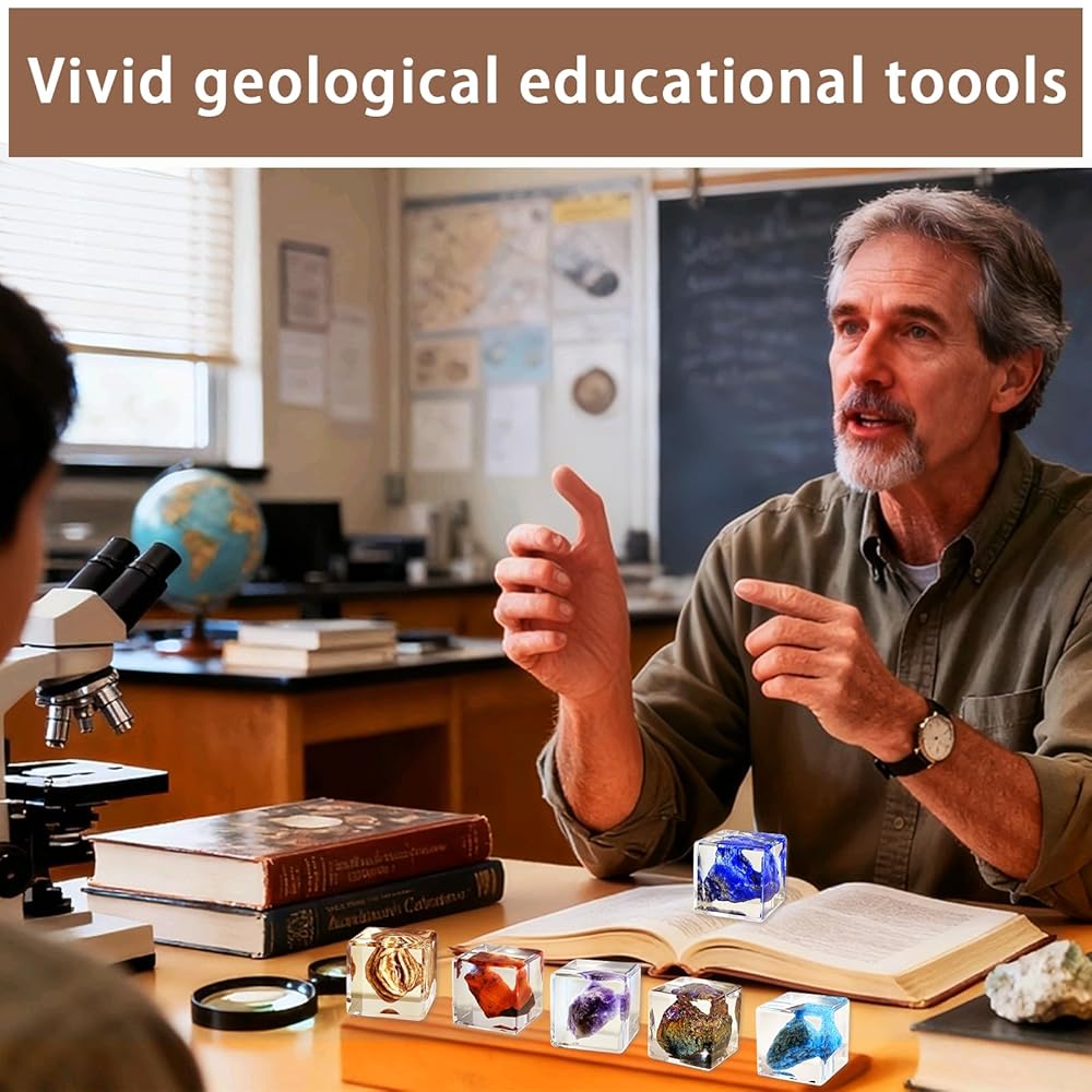 【يجب أن يكون لدى فصل الجيولوجيا】 يحتوي مكعب الراتنج هذا على 6 عينات معدنية حقيقية (الجمشت، اليشب الأحمر، إلخ) لمعلمي العلوم. مثالي لإظهار الجيولوجيا ودورة الصخور والخصائص المعدنية في تعليم العلوم والتكنولوجيا والهندسة والرياضيات وإعدادات المدرسة المنزلية. مورد تعليمي دائم