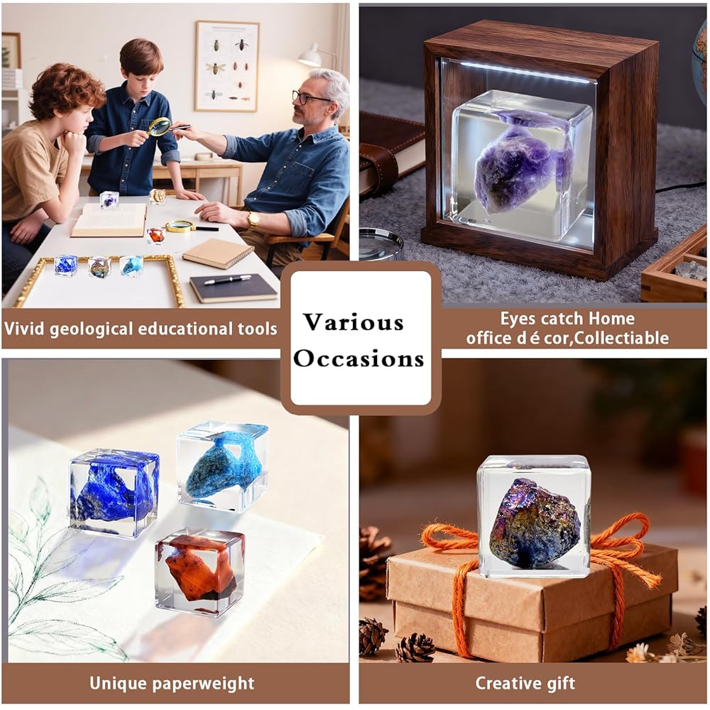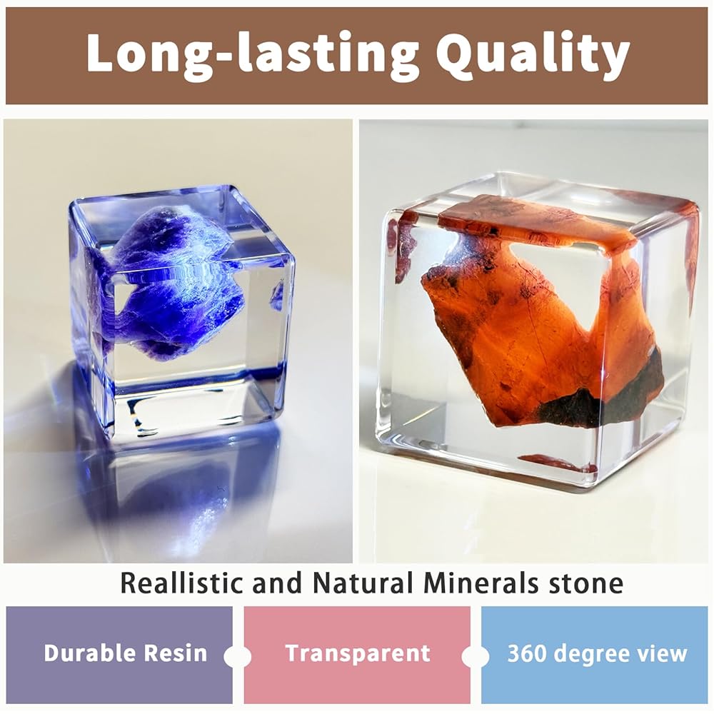 【مادة راتنج متينة وعالية الجودة، مكعب 1.38 بوصة تقريبًا】يتم حفظ كل عينة يدويًا في راتنج فائق الوضوح وعالي الصلابة. يوفر رؤية 360 درجة للمراقبة التفصيلية للهياكل والألوان البلورية. متين ومقاوم للخدش للعرض على المدى الطويل.
