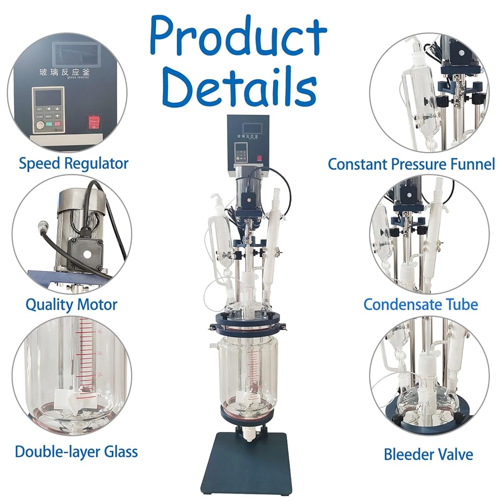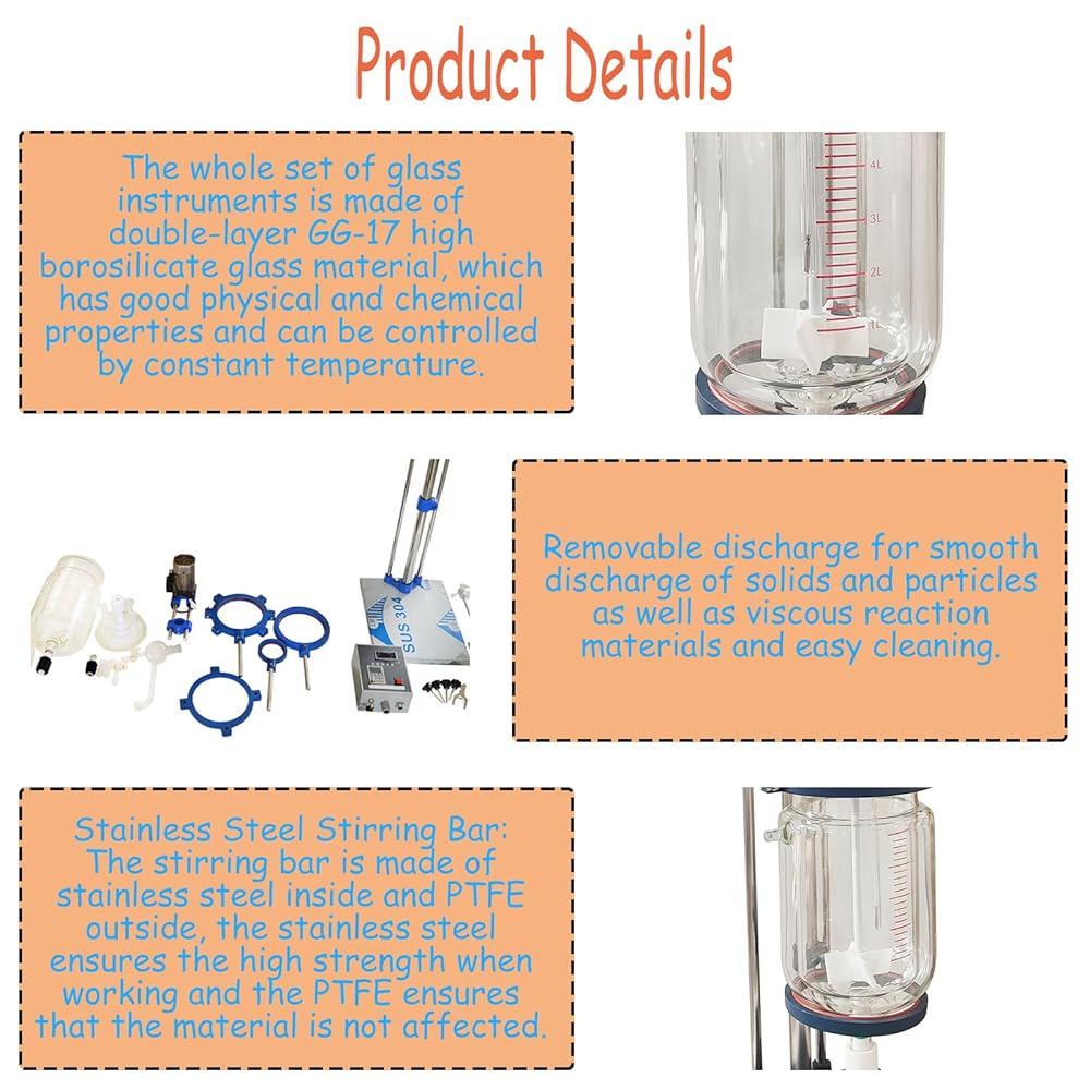 5L Chemical Lab Jacketed Glass Reactor Vessel