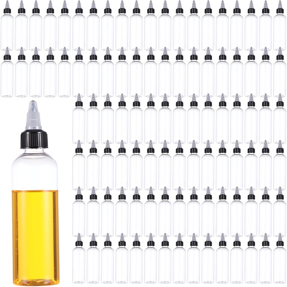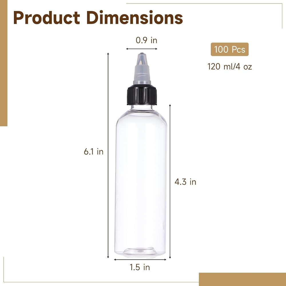 Abundant Quantity: Includes one hundred plastic squeeze bottles, each holding 4 oz; the generous supply supports daily use and frequent refills; easily organize multiple liquids; great for busy kitchens or salons