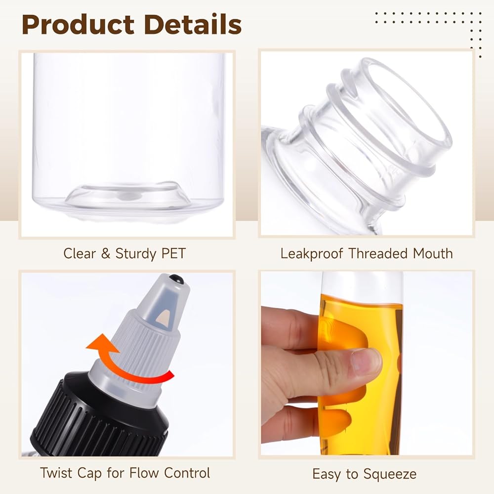 100 قطعة من زجاجات الضغط البلاستيكية، أدوات توزيع زيت الشعر الشفافة بأغطية علوية ملتوية، وموزعات بهارات فارغة مانعة للتسرب، وزجاجات صغيرة قابلة لإعادة الملء للسوائل والأحبار والدهانات والمواد اللاصقة