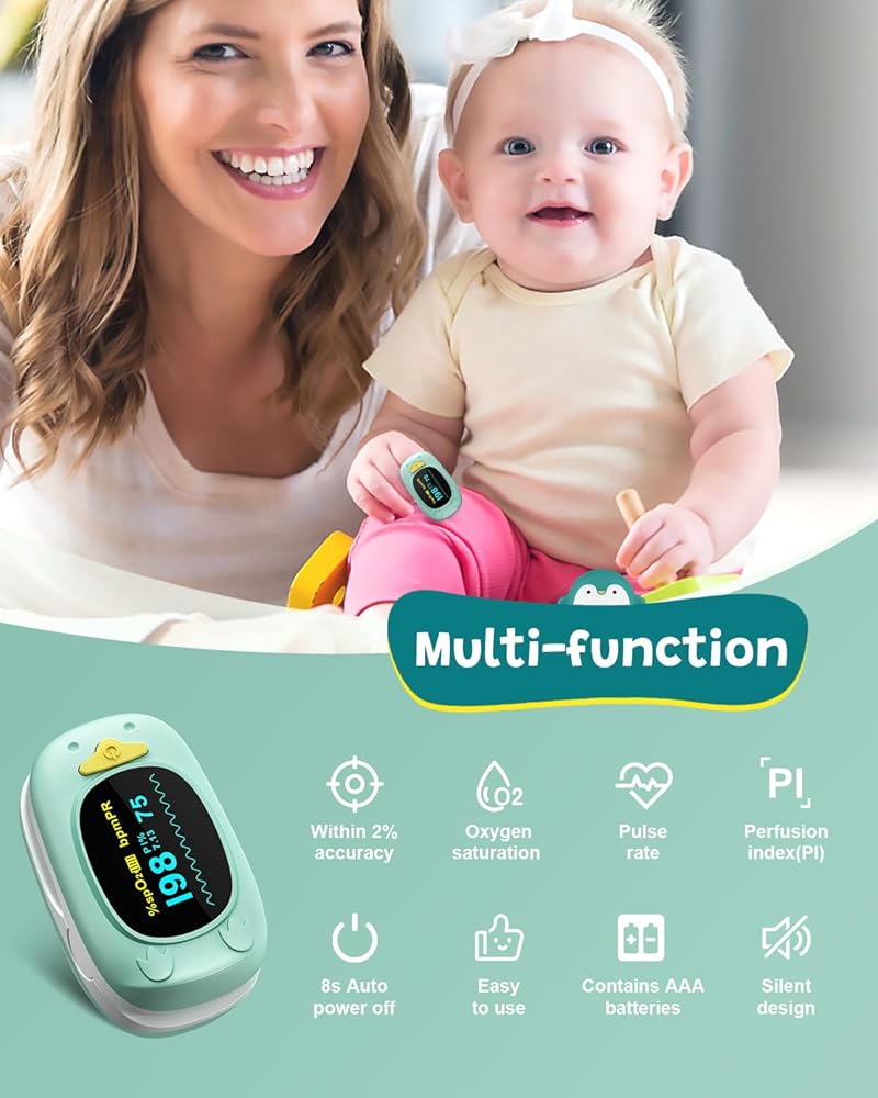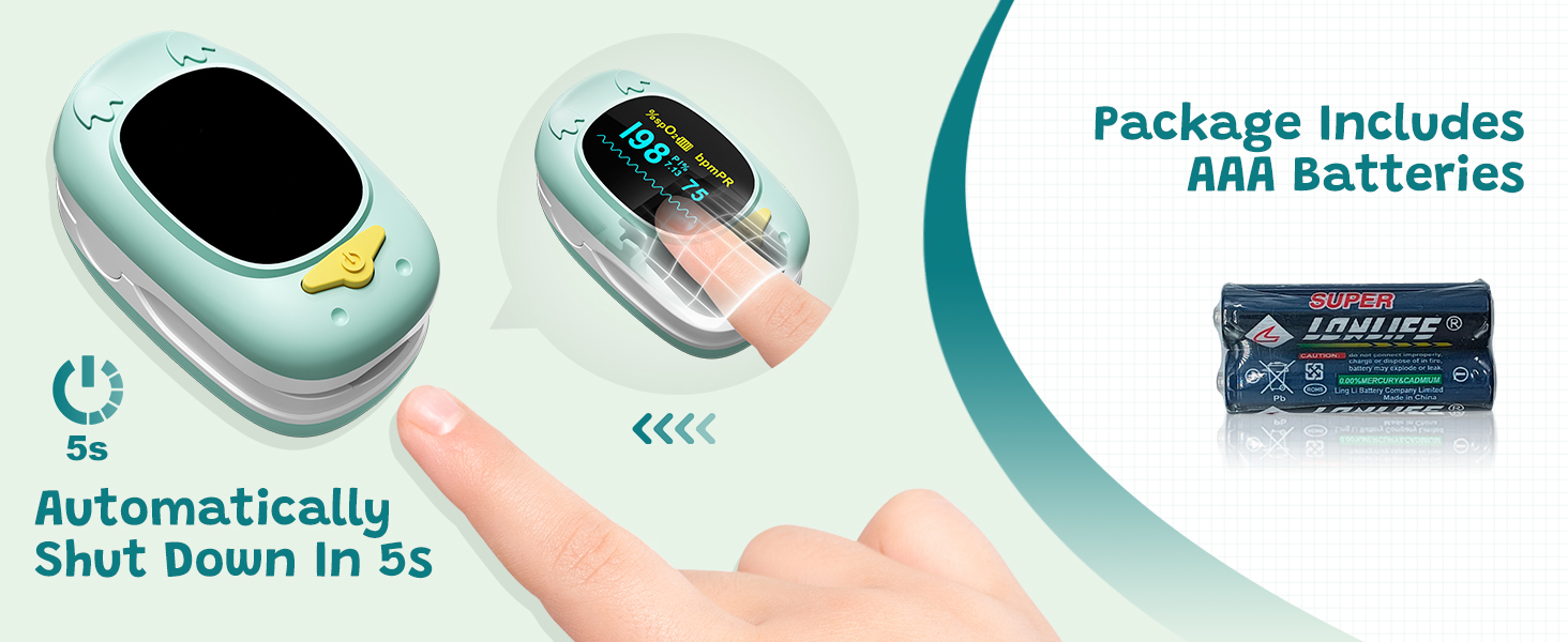 سهل الاستخدام: اضغط على الزر للبدء، فقط ضع إصبعك للقياس. سيتم إيقاف تشغيل جهاز مراقبة الأكسجين في الدم تلقائيًا لمدة 5 ثوانٍ بعد إخراج إصبعك، ولا يتطلب أي عملية. يمكن لطفلك أن يتعلم بسهولة استخدام مقياس التأكسج النبضي. ملحوظة: هذا الجهاز يستخدم فقط للأغراض الرياضية والطيران، وليس للأغراض الطبية.