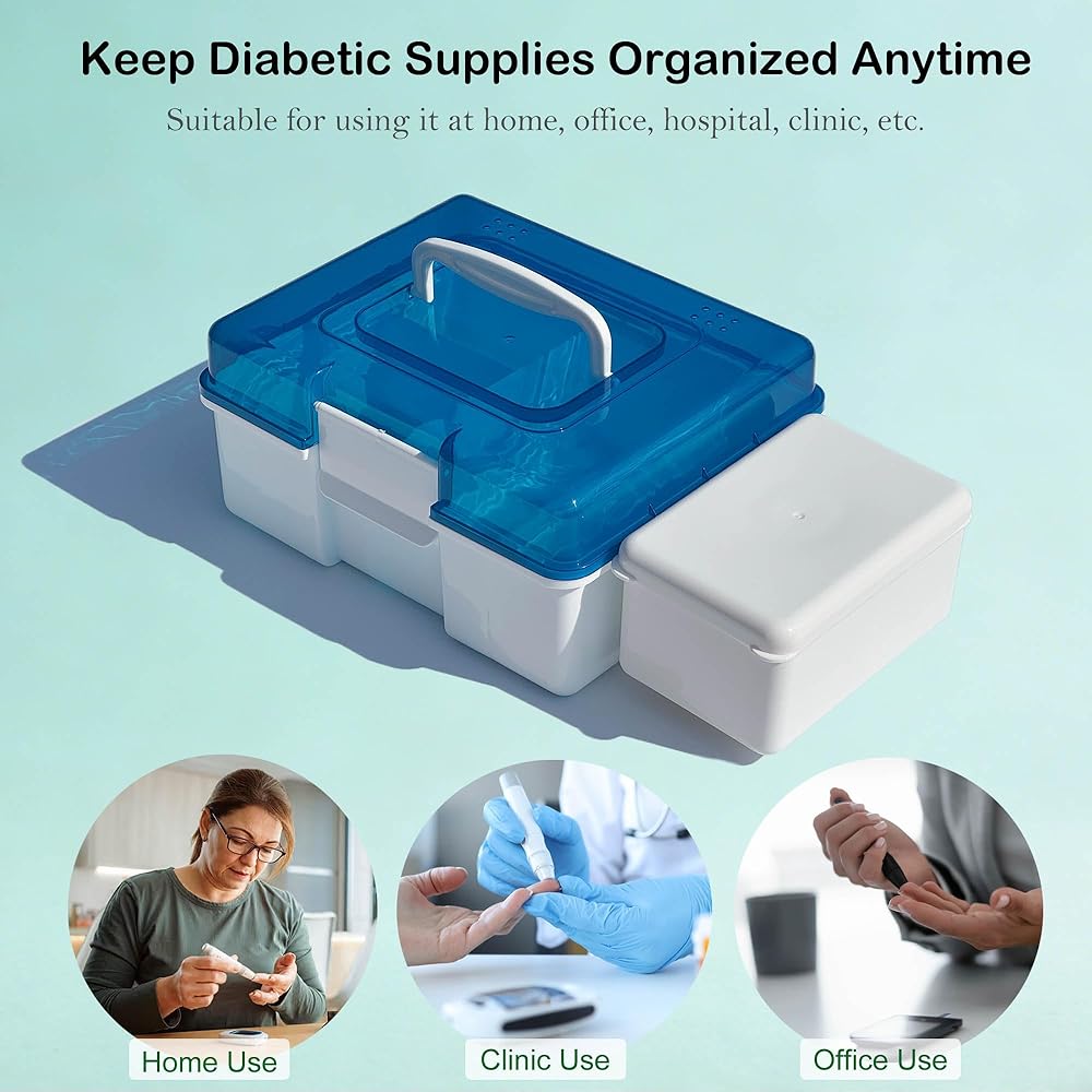 【أفضل مجموعة للمنزل والسفر】تتميز حقيبة السفر هذه لمستلزمات مرضى السكري بمقبض قوي في الأعلى لسهولة الحمل، مما يجعلها مناسبة للاستخدام في المنزل أو المستشفى أو العيادة أو عند الخروج. سواء كنت في رحلة عمل أو سفر أو نزهة سيرًا على الأقدام، فهو يسمح لك بالوصول بسهولة إلى جميع مستلزمات مراقبة نسبة الجلوكوز في الدم في أي وقت وفي أي مكان.