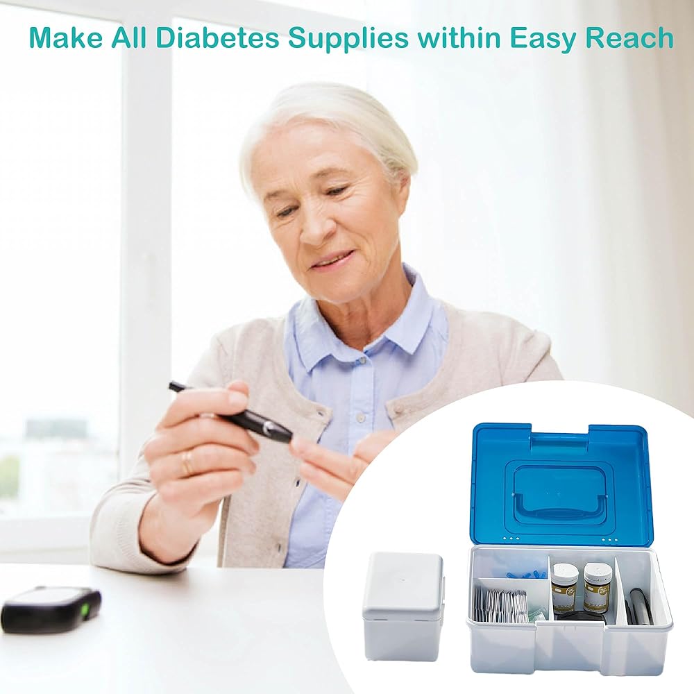 【مثالية لمستلزمات مرضى السكري】تم تصميم حقيبة إمداد مرضى السكري الخاصة بنا خصيصًا لتخزين مستلزمات مرضى السكري، والحفاظ على جميع أساسيات اختبار الجلوكوز في الدم منظمة في صندوق واحد مخصص. يمكنك بسهولة تنظيم أجهزة قياس السكر في الدم، وجهاز الوخز، والمشارط الإضافية، وشرائط اختبار السكر في الدم، وأقلام الأنسولين، والإبر، والشاش المعقم، ومناديل الكحول، والضمادات، وغيرها من الملحقات. قل وداعًا للأدراج الفوضوية والإكسسوارات المفقودة. (القضية فقط!!)