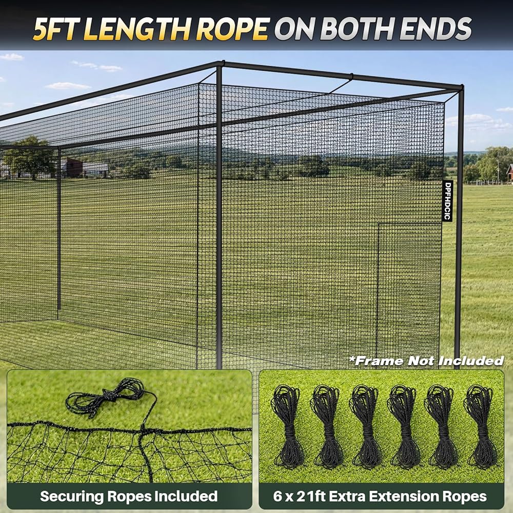Easy Setup: The baseball cage comes with six 5 ft ropes and six extra 21 ft extension ropes to support a variety of setup needs. Whether you are securing it in the backyard, on a training field, or in a larger open space, the flexible ropes help provide a stable and adaptable installation