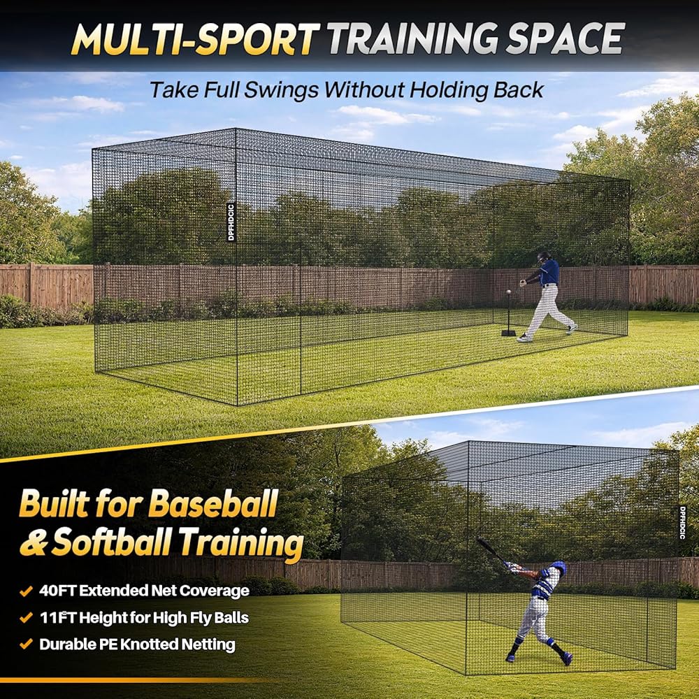 Fully Enclosed Design: Maximize your batting potential with our spacious 40 x 11 x 11 ft Baseball Batting Cage. This safe and focused environment is perfect for both solo and team practice, without the hassle of chasing stray balls across the yard