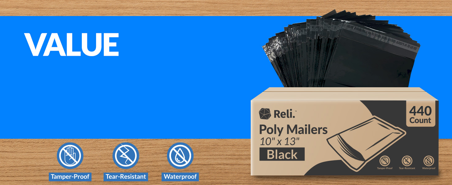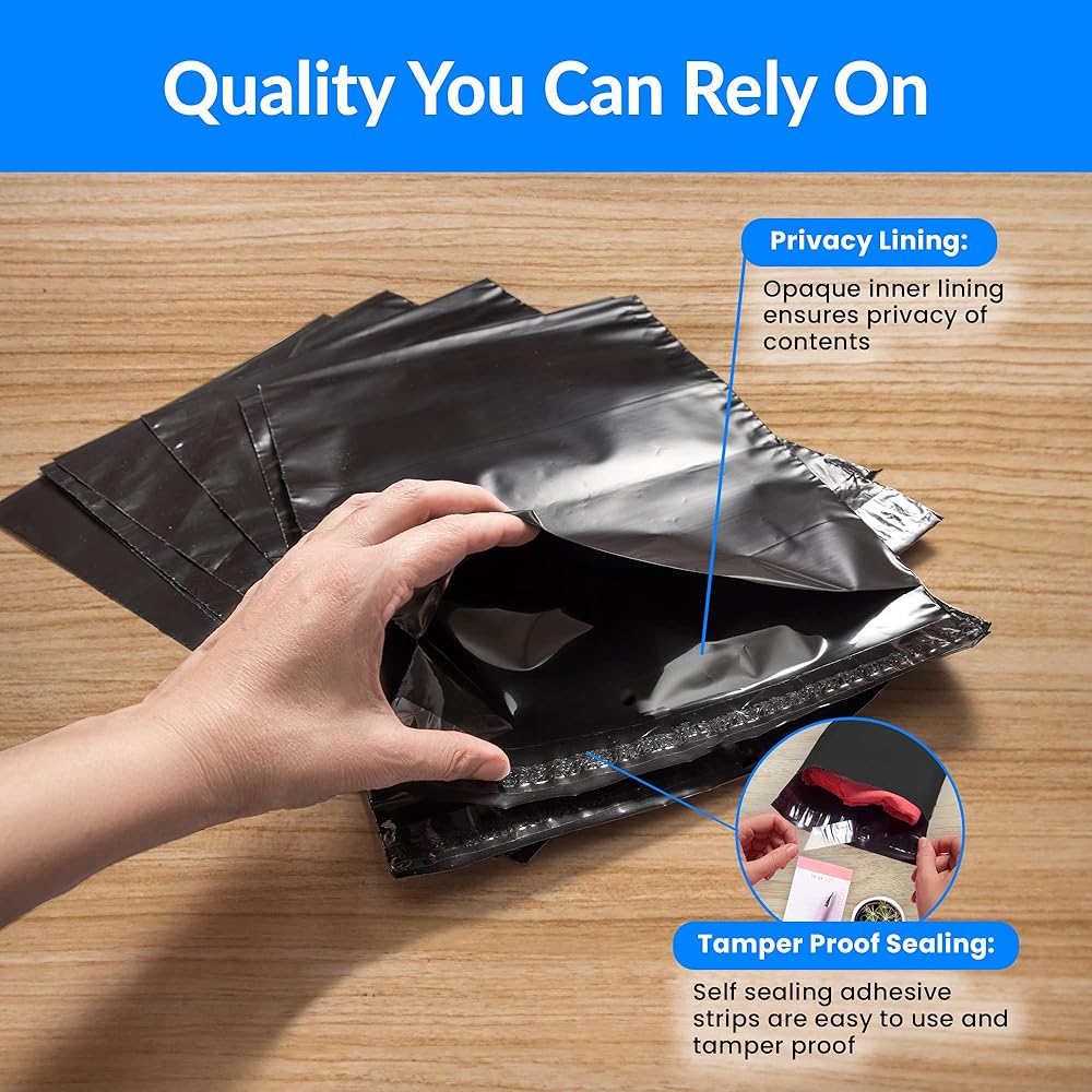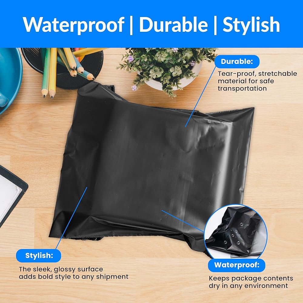 - بريد بولي أسود | 10 × 13 بوصة صغير | 440 عبوة | غير مبطنة، ذاتية الغلق، مقاومة للماء وأنيقة