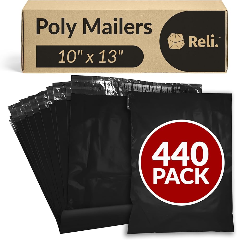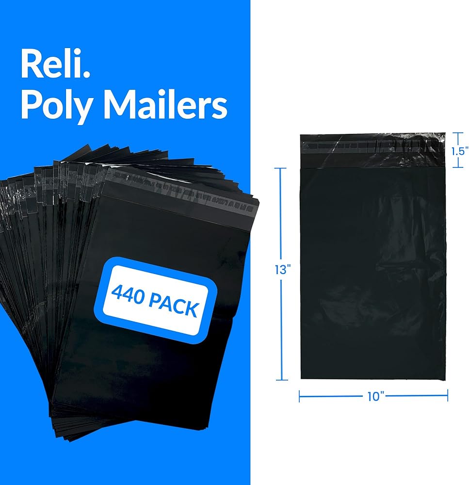 ريلي. (440 قطعة) بريد بولي 10 × 13 بوصة، أسود | أكياس شحن للملابس، الأعمال الصغيرة | أكياس بولي سوداء للشحن، 10 × 13 بوصة | بريد/تغليف | أظرف غير مبطنة ذاتية الغلق