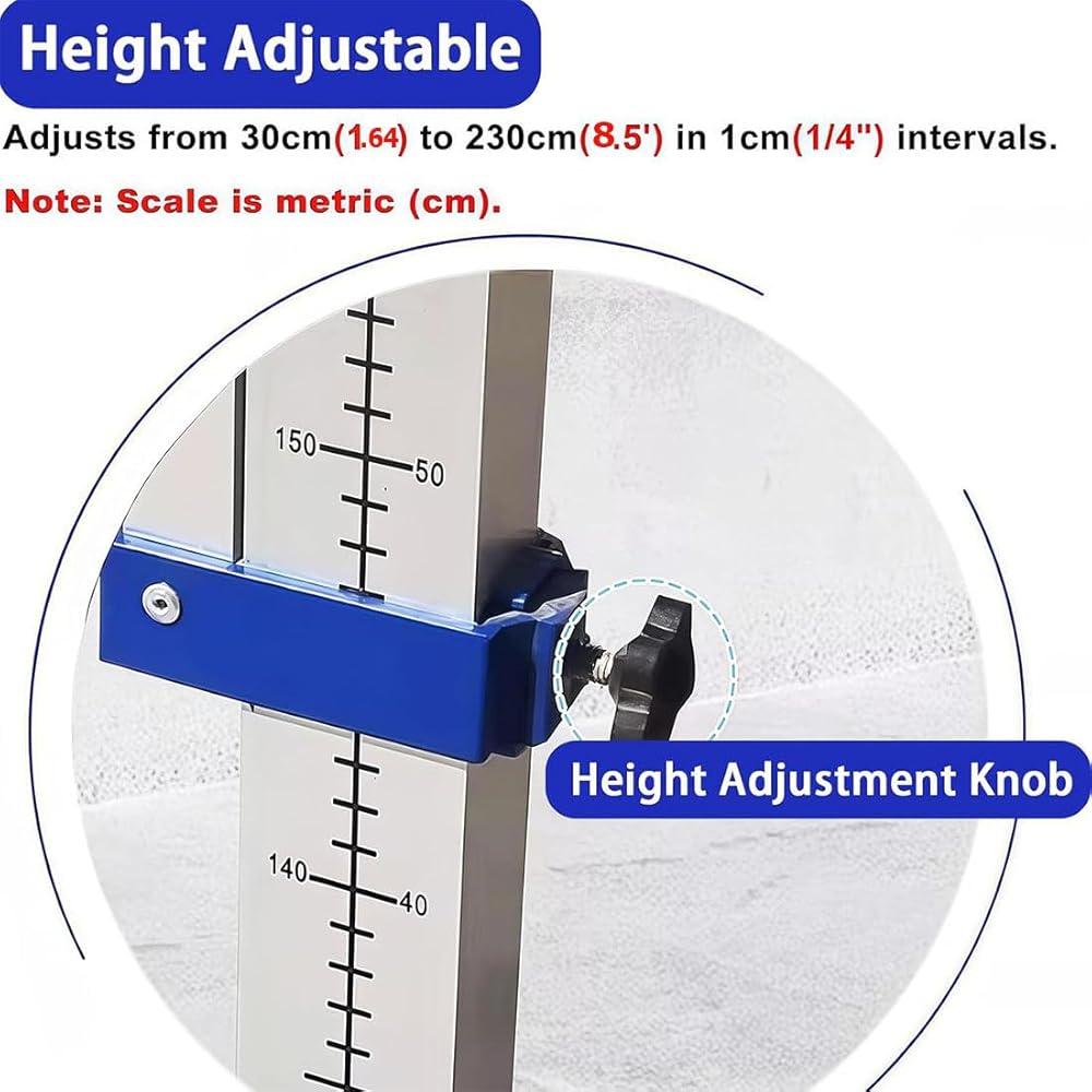 - Height adjustment range: 50 cm (1.64 ft) to 260 cm (8.5 ft) in 1 cm (1/4 inch) increments