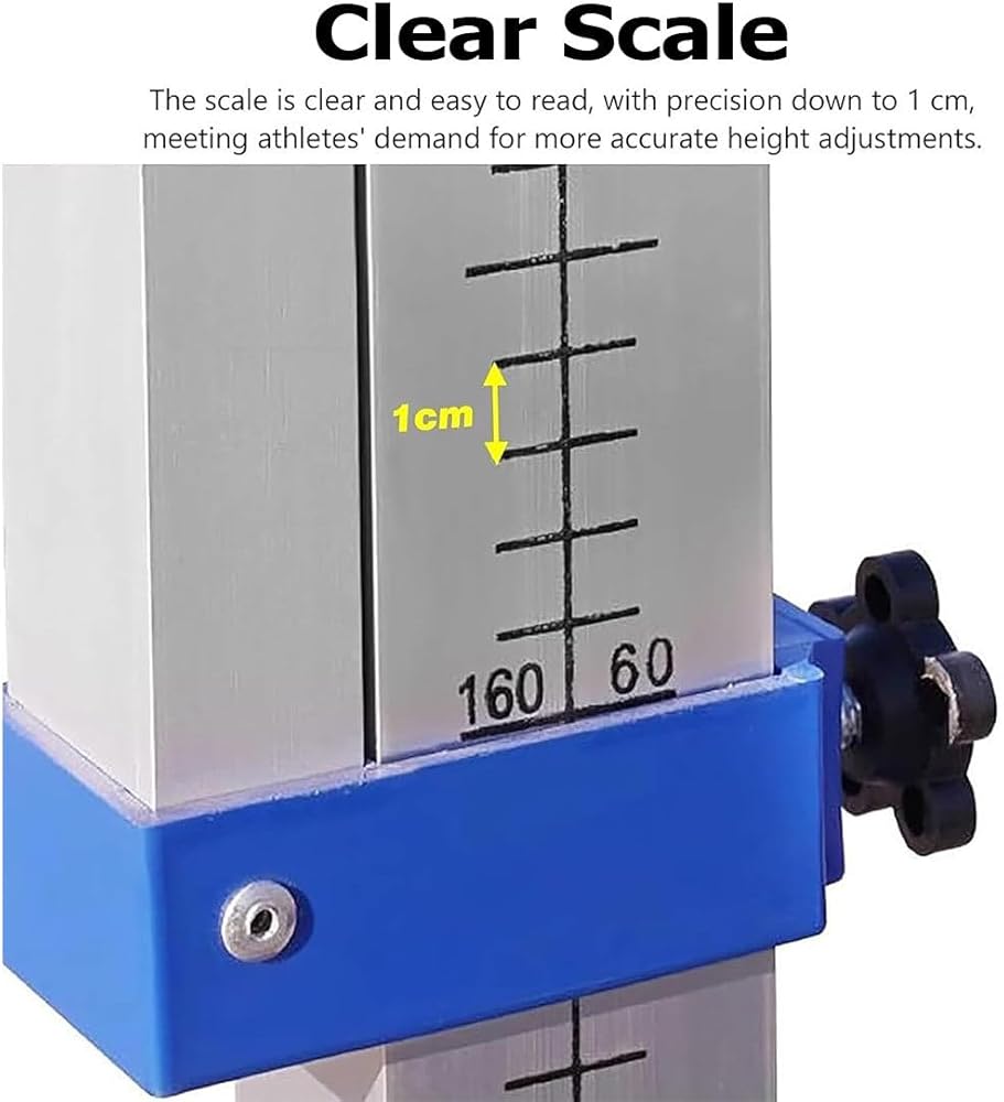 • ●【PRECISE AND CLEAR ADJUSTABLE SCALE】: height-adjustable high jump stand features clear metric scales ranging from 50 (1.64') to 260 (8.5') cm, with 1cm micro-adjustments to aid in scientific training and accurate performance measurement.