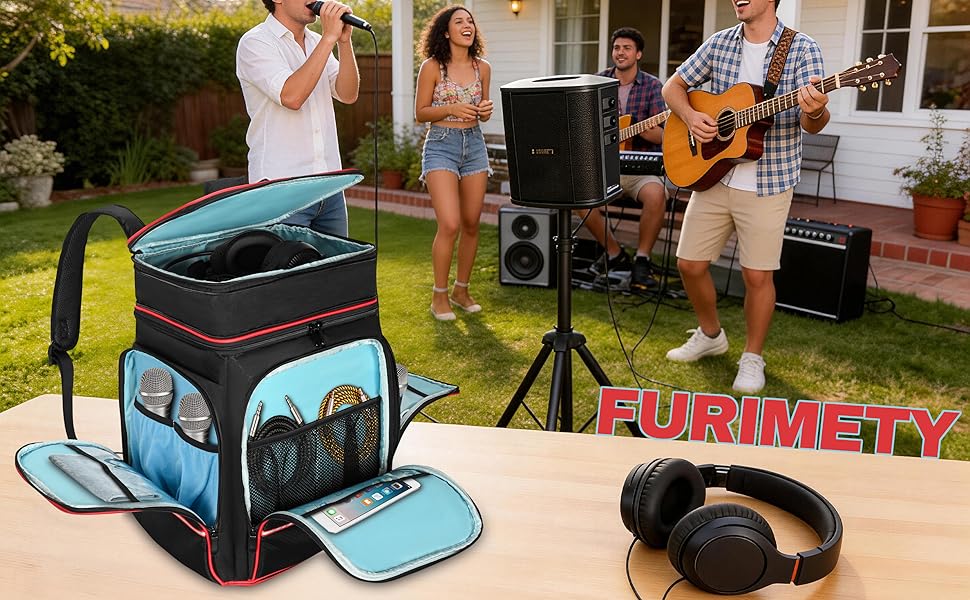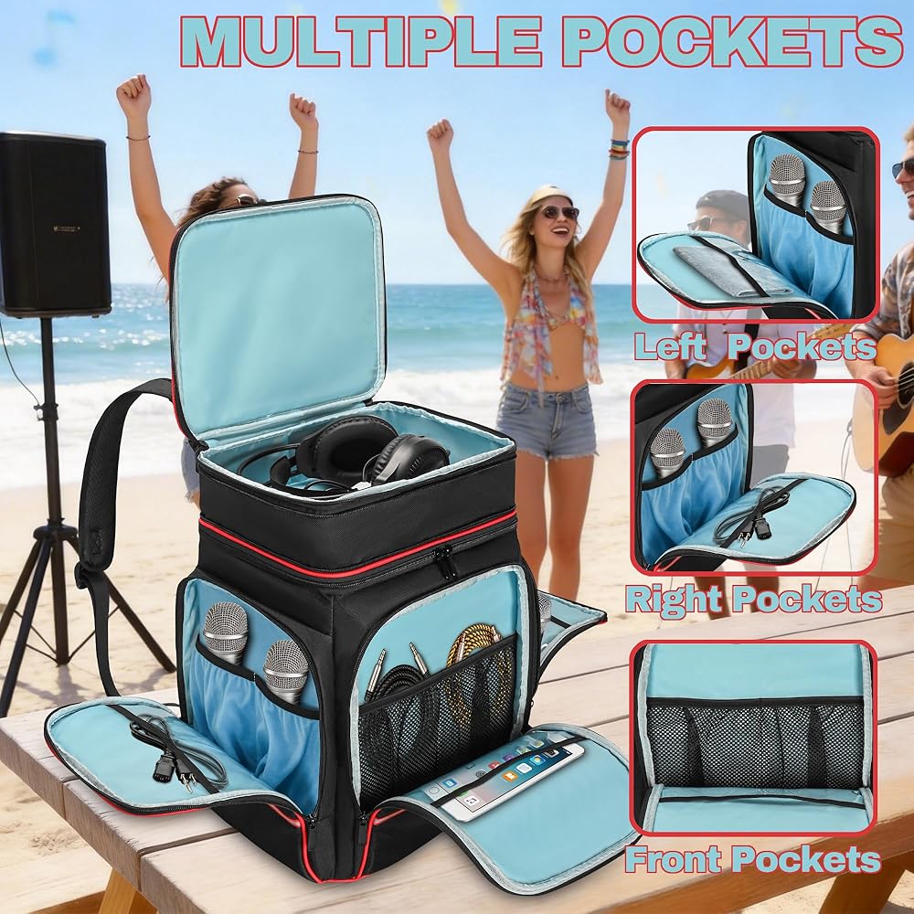 خيارات تخزين متعددة: جيب علوي بسحاب قابل للتوسيع لسماعات الرأس؛ تعمل الجيوب الجانبية ذات البطانة المخملية الناعمة على حماية الميكروفونات، بينما تعمل الجيوب الأمامية والجانبية المزودة بمقصورات شبكية وبلاستيكية على تخزين الكابلات والشواحن والمحولات وأقمشة التنظيف وأغطية الميكروفون وغيرها من الملحقات. تتميز الجيوب الجانبية أيضًا بمناطق التصحيح لتصميم أسلوبك الخاص.
