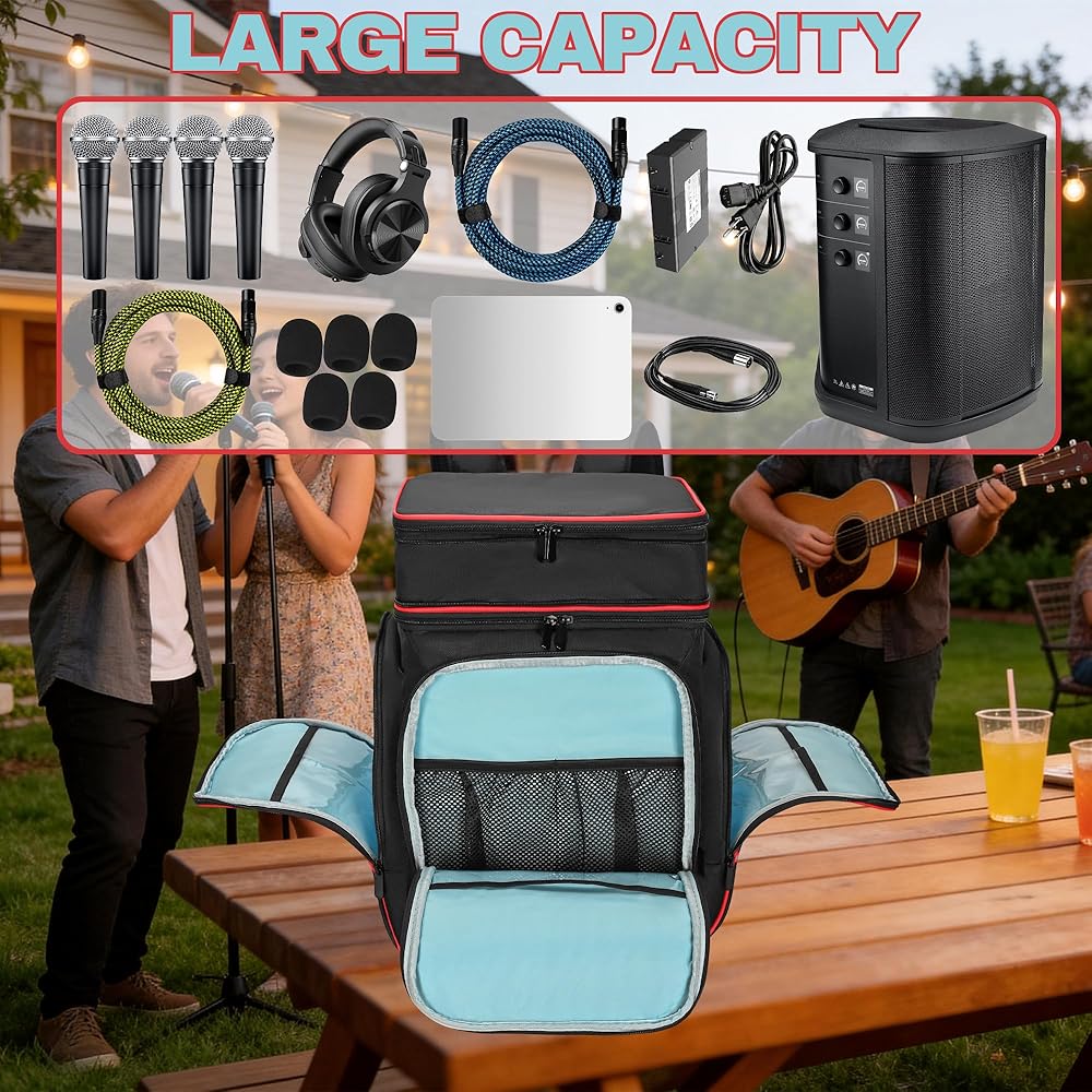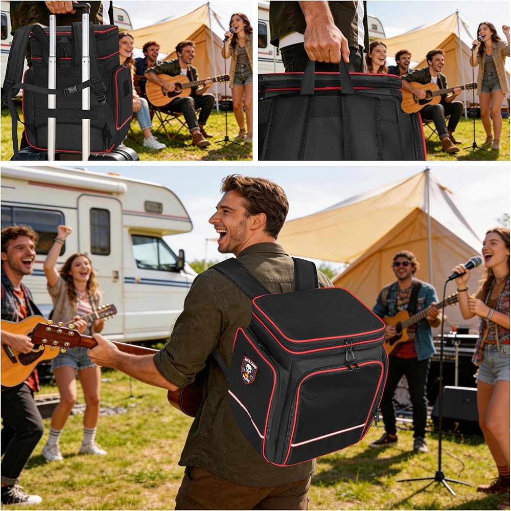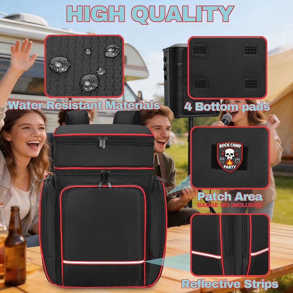 شديدة التحمل وجاهزة للسفر: تصميم مقاوم للماء والغبار ومتين يحافظ على سلامة معداتك أثناء النقل. الجزء السفلي المقوى والسحاب الناعم ثنائي الاتجاه يجعله مثاليًا للحفلات أو الحفلات أو العروض.