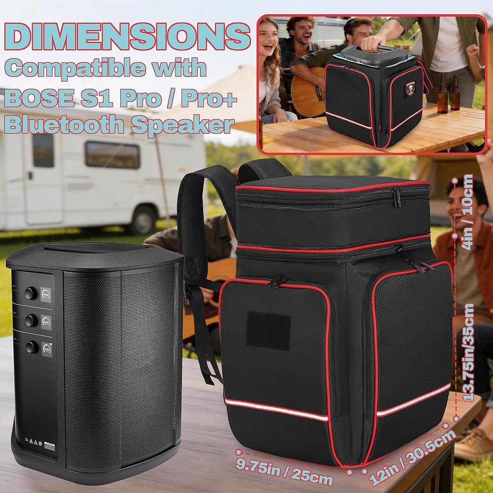 ملاءمة وحماية مثالية: مصممة خصيصًا لمكبرات صوت البلوتوث المحمولة Bose S1 Pro / S1 Pro+. نايلون عالي الجودة مع بطانة مبطنة تحمي مكبر الصوت الخاص بك من الصدمات والغبار والبقع. تضيف الشرائط العاكسة والأقدام المطاطية الأمان وطول العمر.