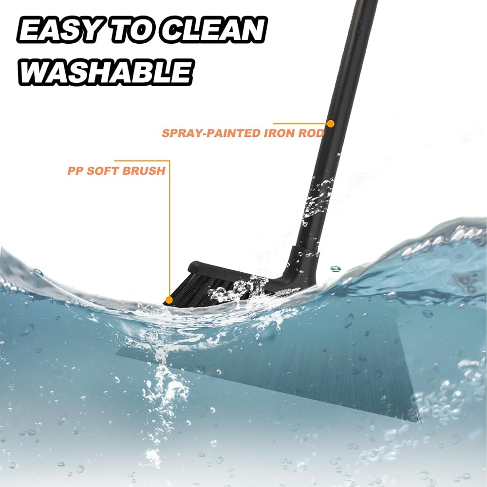 شعيرات تنظيف فعالة: يمكن لتصميم الشعيرات المكون من 3 صفوف تنظيف الغبار الناعم والجسيمات وقصاصات الورق والأوراق على الأرضيات الصلبة بعمق، مما يضمن سطحًا نظيفًا وخاليًا من الغبار، مما يجعلها أداة فعالة للغاية بين مكانس التنظيف الداخلية والخارجية.