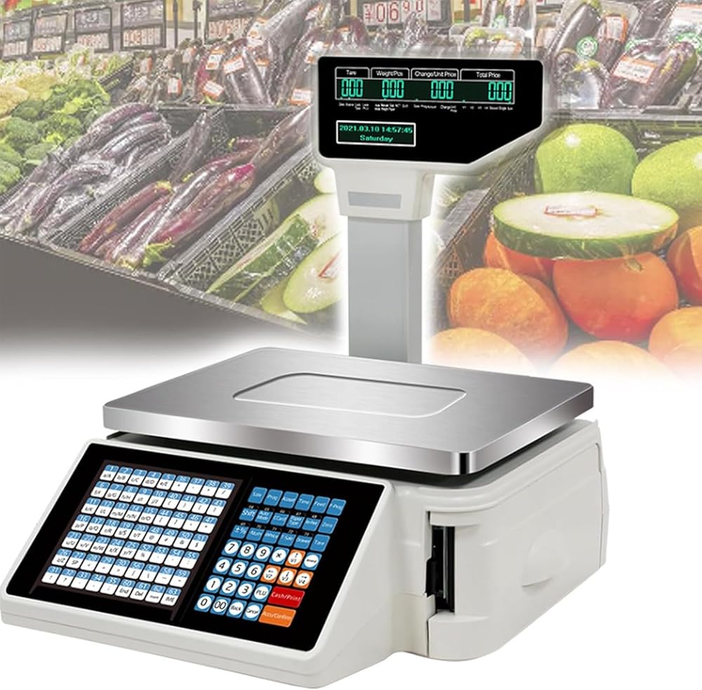مقياس وزن الباركود الرقمي مع شاشة عرض مزدوجة الجوانب لطباعة ملصقات الأسعار، مثالي لمتاجر بيع المواد الغذائية بالتجزئة ومحلات السوبر ماركت، بما في ذلك صندوق النقود