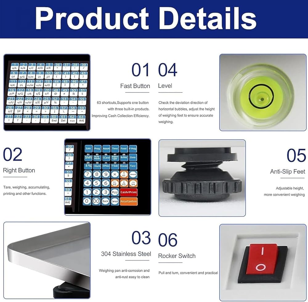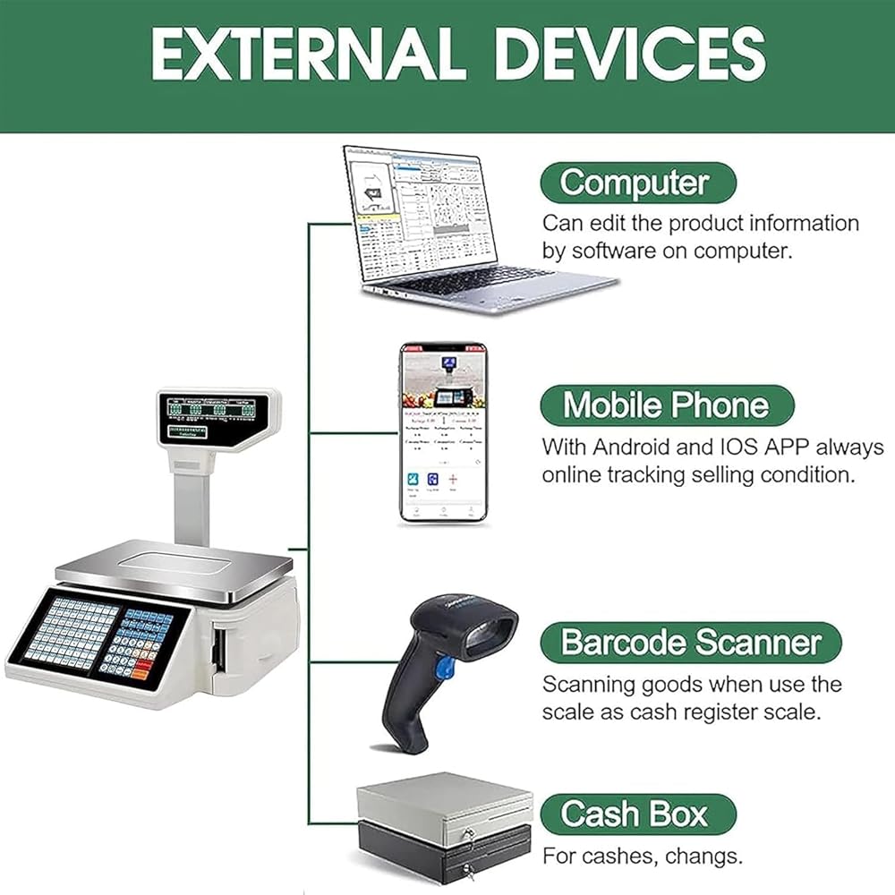 • Versatile Connectivity Options: Connects with computers, mobile phones, barcode scanners, and cash drawers. Supports product information editing through computer software, enabling direct input into the scale for streamlined operations.