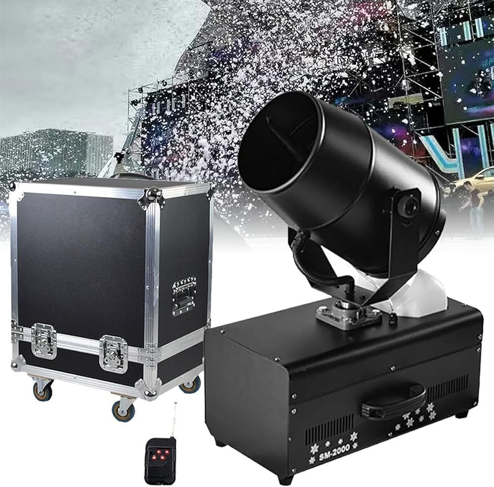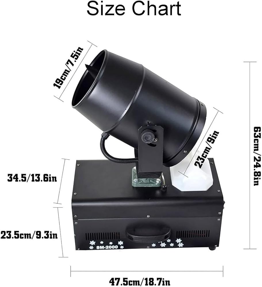 • Professional Stage Snowmaker: Equipped with a powerful 2000W fan, it sprays snow farther and has adjustable spray volume, allowing you to control the amount of snow you need at any time. Spraying distance: 3-5 meters. Spraying from a high position is optimal.