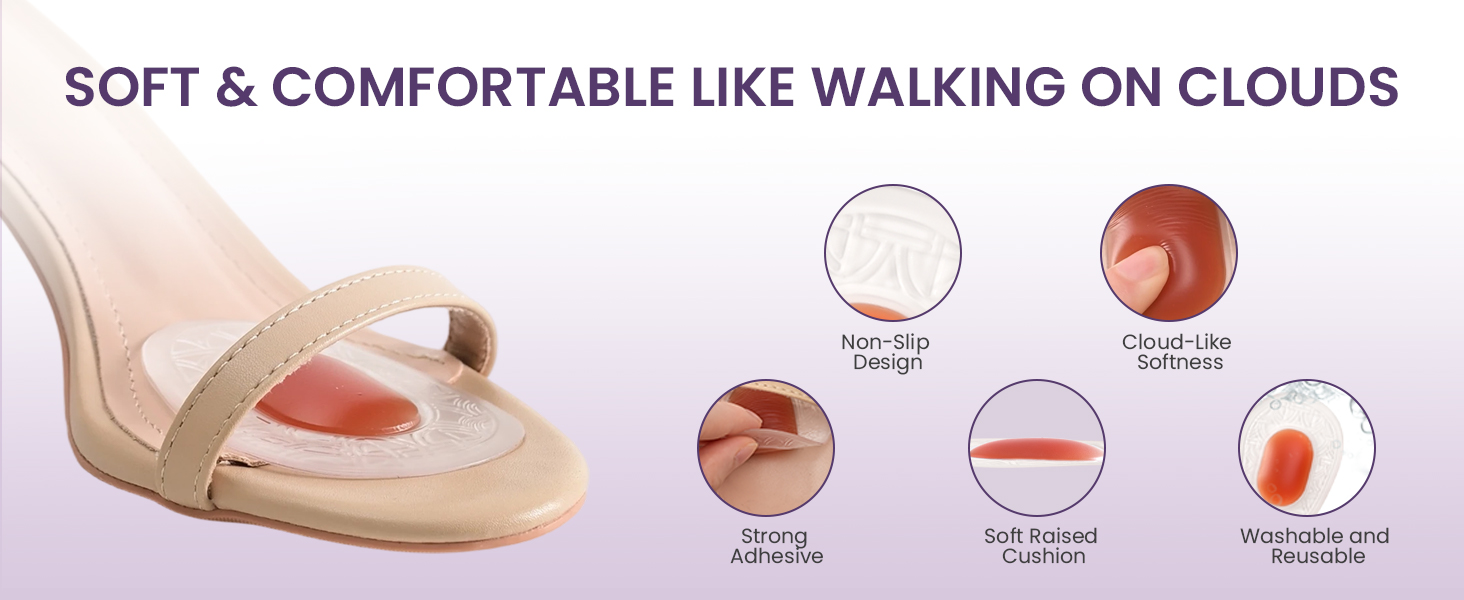 سهل الاستخدام والإزالة: ما عليك سوى تنظيف منطقة مقدمة القدم داخل حذائك، وتقشير الطبقة الواقية، واضغط على الوسادة في مكانها. يبقى في مكانه بشكل آمن لفترات طويلة. عند الحاجة إلى الإزالة، يمكن تقشير الوسادة بسهولة دون ترك بقايا أو إتلاف الأحذية.