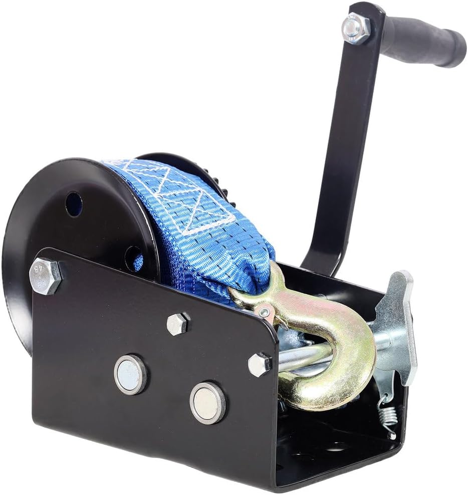 32.8 ft Heavy-Duty Blue Strap for Safer Handling: Equipped with a durable 32.8 ft blue polyester strap that offers flexibility, abrasion resistance, and easier handling compared to steel cable—ideal for boat trailer and vehicle towing applications.