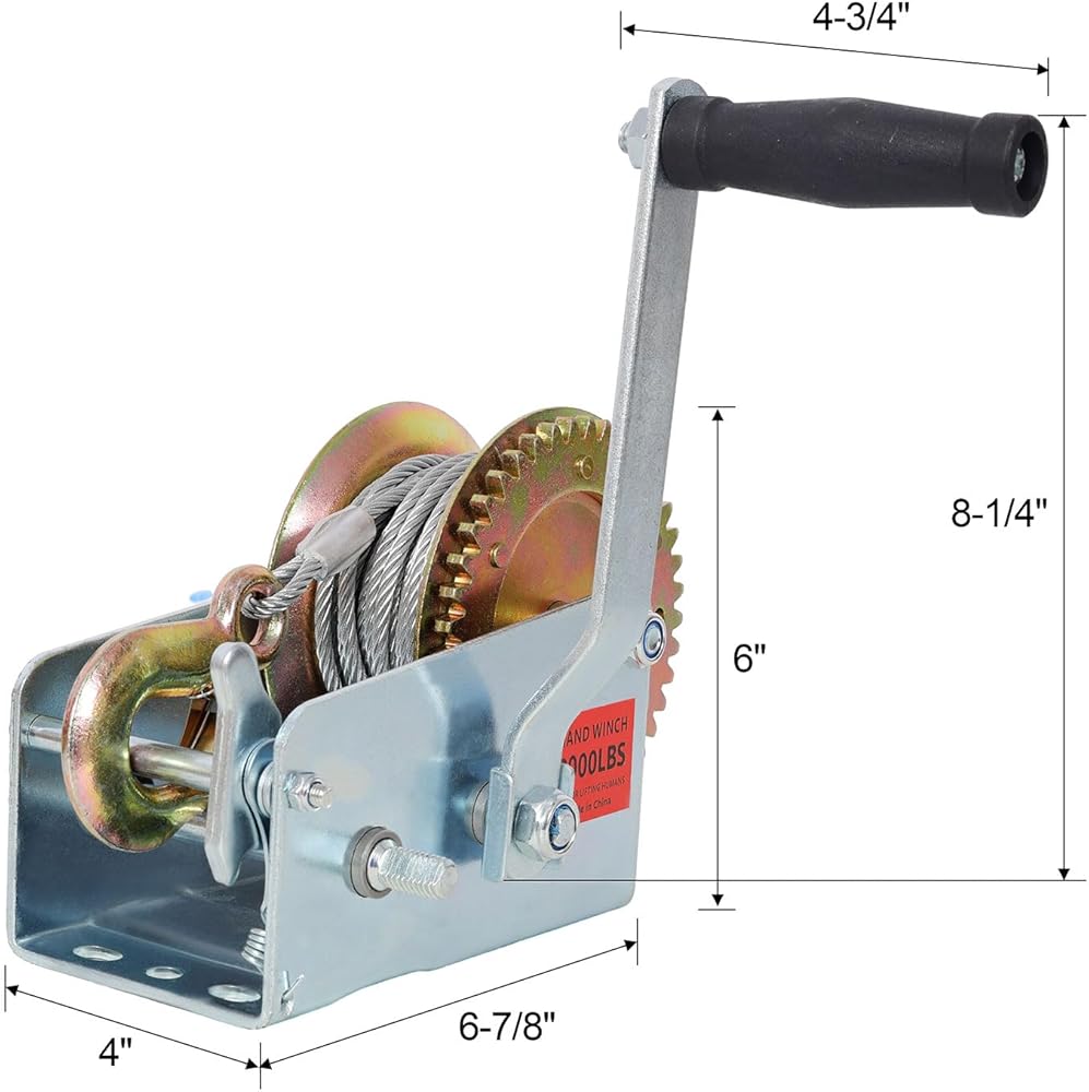 2000 lb Pulling Capacity for Reliable Towing: Designed for controlled horizontal pulling, this manual hand winch delivers up to 2000 lbs pulling capacity, making it ideal for boat trailers, ATVs, utility trailers, small equipment, and light recovery tasks.