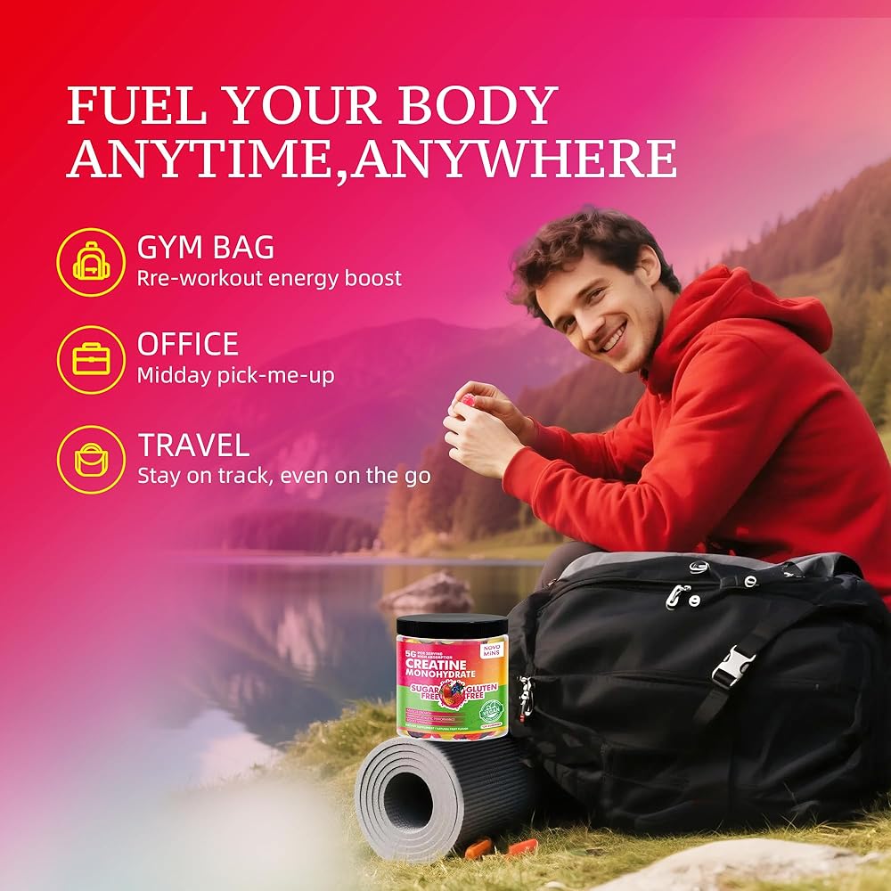 [ Key Benefits]: Our Creatine monohydrate gummies are an easy way to consume, 4 gummies per serving, you can take it at any time, any place. It improved muscle strength, muscle recovery, improve endurance and energy boost. Suitable for a variety of users, and enjoyable taste.