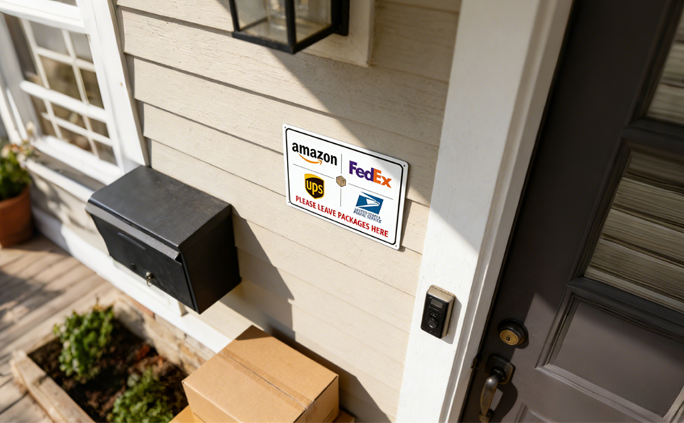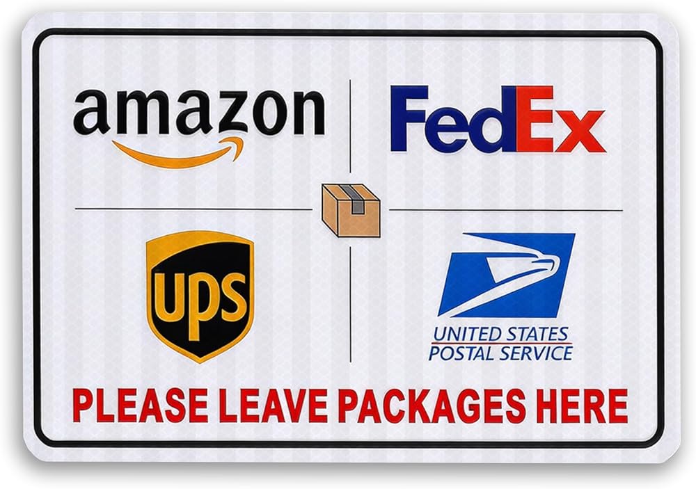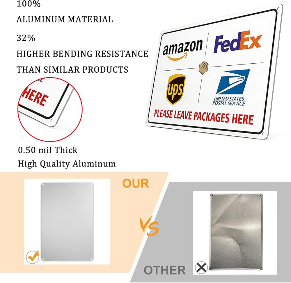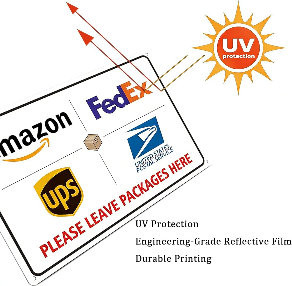 علامة تسليم الطرود، يرجى ترك الطرود هنا علامة للاستخدام الخارجي مقاس 8 × 12 بوصة، صفائح عاكسة من الدرجة الهندسية سميكة خالية من الصدأ "يرجى ترك الطرود هنا" للشرفة/الباب الأمامي