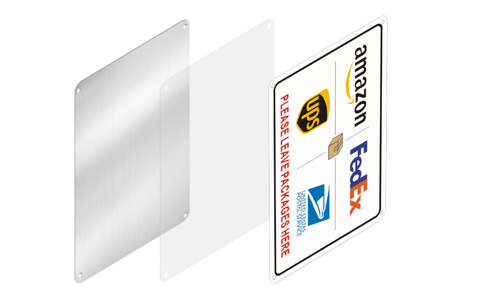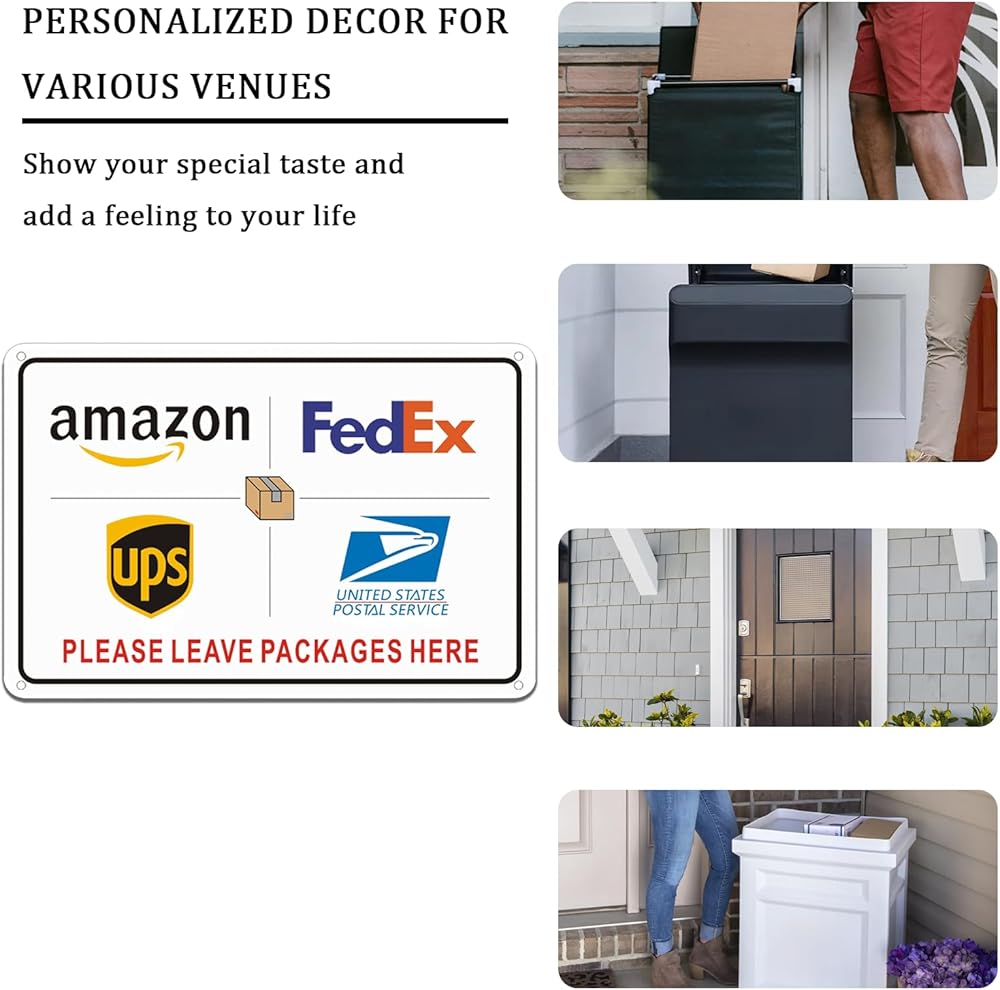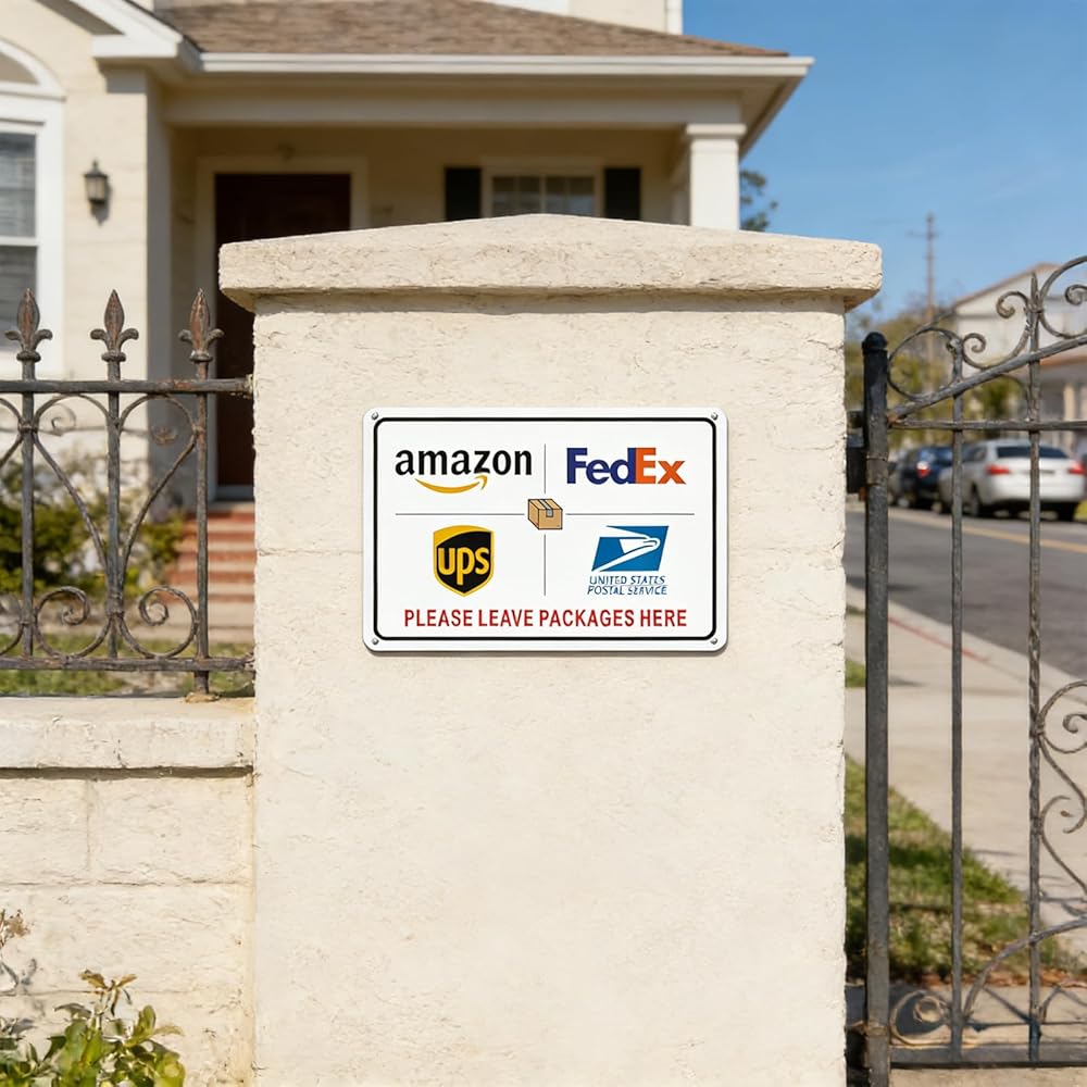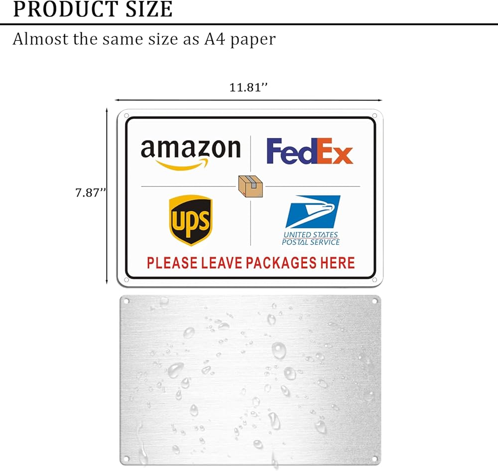 علامة تسليم الطرود، يرجى ترك الطرود هنا علامة للاستخدام الخارجي مقاس 8 × 12 بوصة، صفائح عاكسة من الدرجة الهندسية سميكة خالية من الصدأ "يرجى ترك الطرود هنا" للشرفة/الباب الأمامي