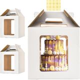 DIMENSIONS: Large cake box measuring 12 x 12 x 12 inches, perfect for transporting and storing tall tiered cakes up to 10-12 inches with four windows