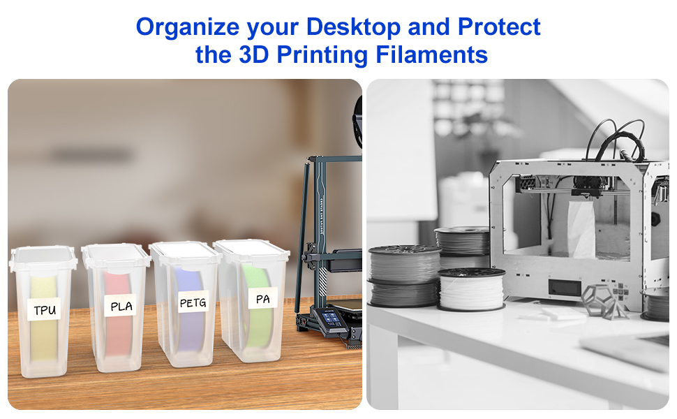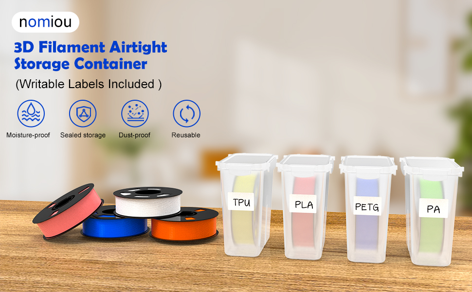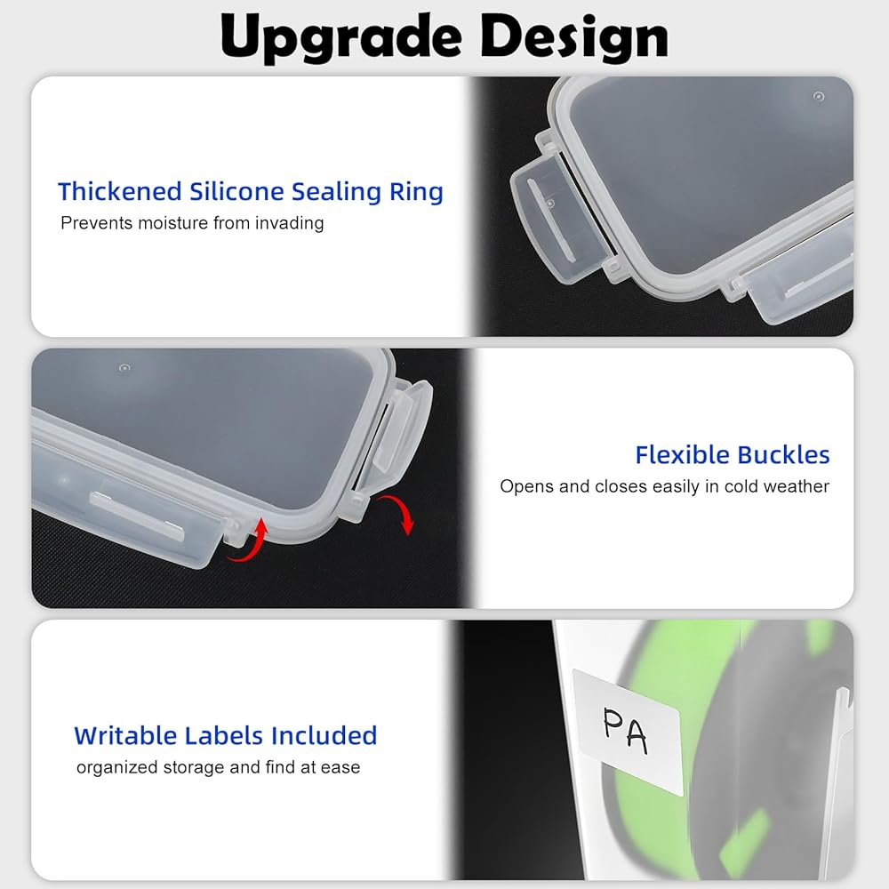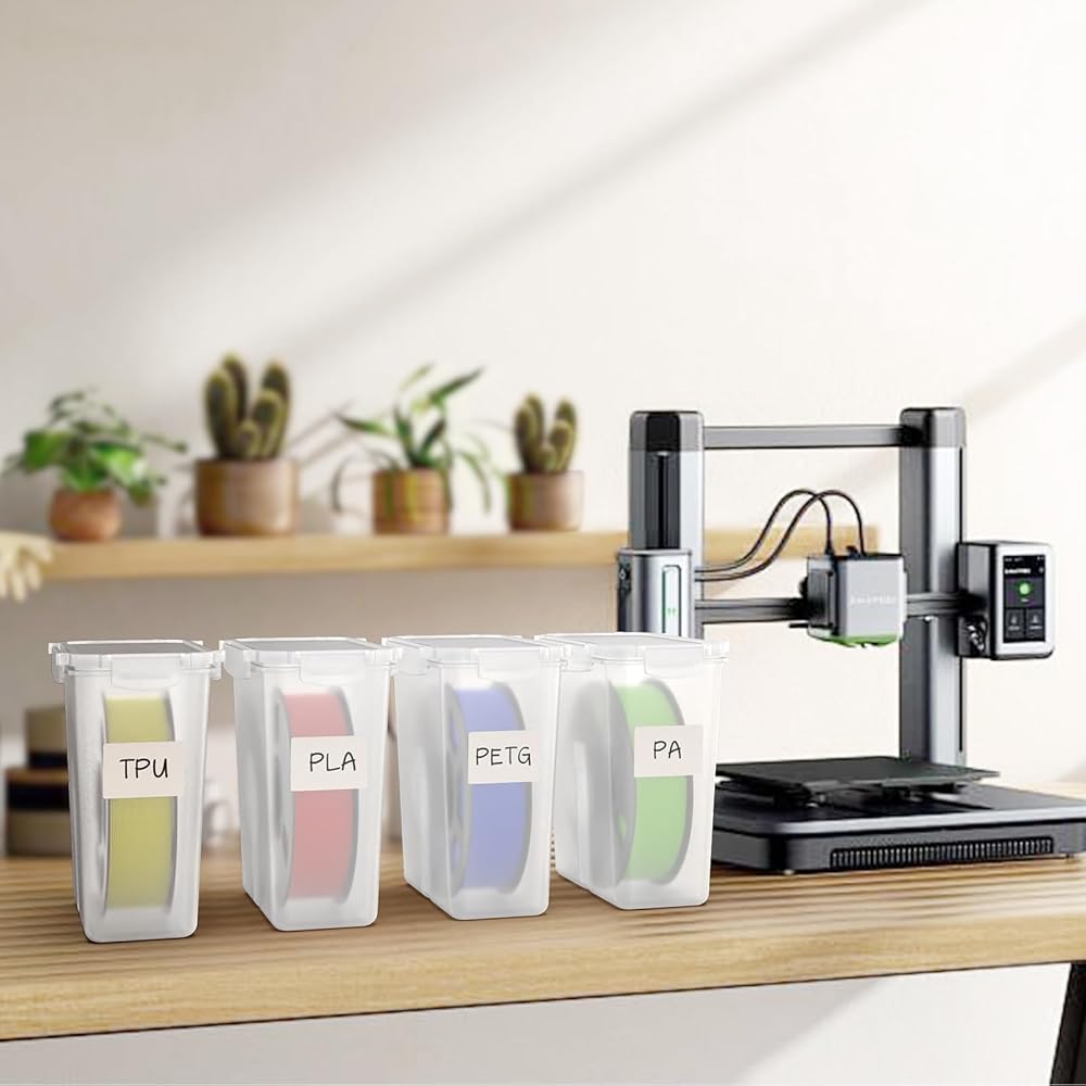 Package Included: Each set includes 4 filament containers and 18 writable labels. Allowing you to organize multiple filament types with ease. The labels help you quickly identify material, color, and print settings.