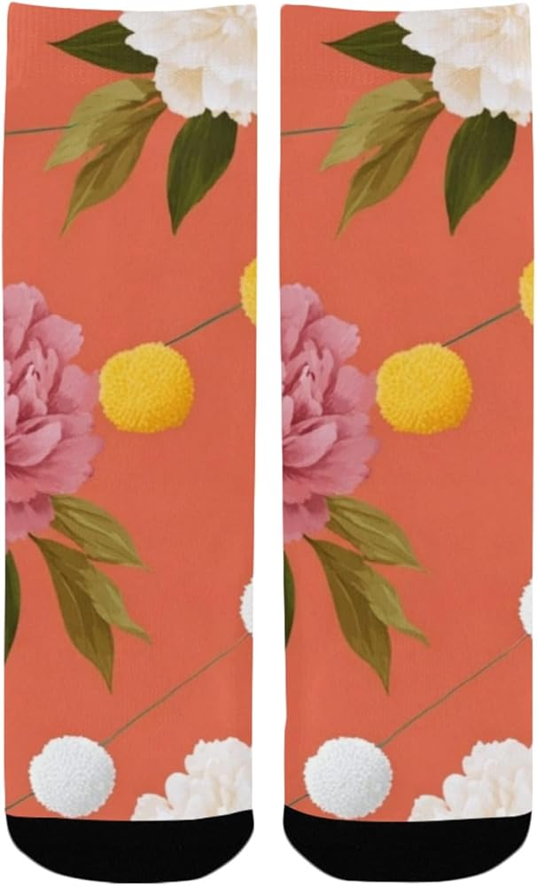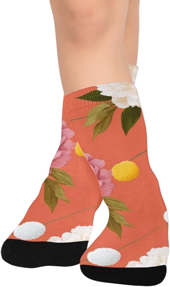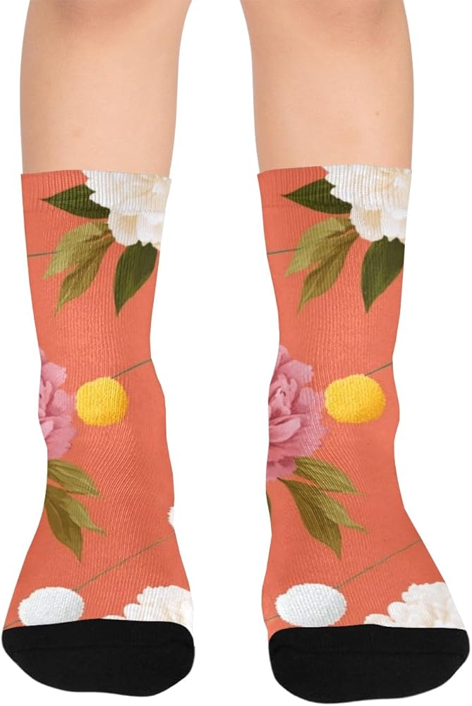 جوارب المشي لمسافات طويلة على شكل زهرة الفاوانيا النابضة بالحياة - جوارب شتوية حرارية سميكة دافئة للأولاد والبنات للمدرسة، والارتداء اليومي والأنشطة الخارجية