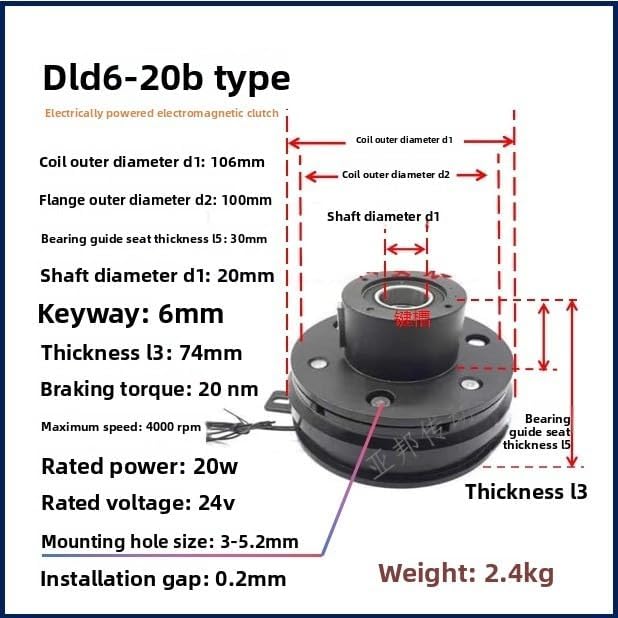• Stable Performance & Robust Durability This 12/24V DLD6 single plate electromagnetic clutch and brake features a consistent friction coefficient, enabling high-frequency and high-energy operation in industrial settings. Its sturdy construction resists wear and tear from prolonged use, ensuring reliable performance even under heavy-duty working conditions.
