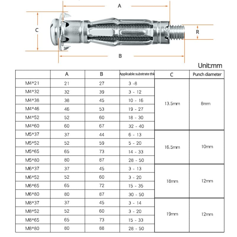 High hardness,strong and not easy to break,long service life. The surface is smooth without burrs and comfortable to the touch. Easy to install and easy to use. A variety of sizes are available to meet different needs. This is a practical and reliable hardware fastener.