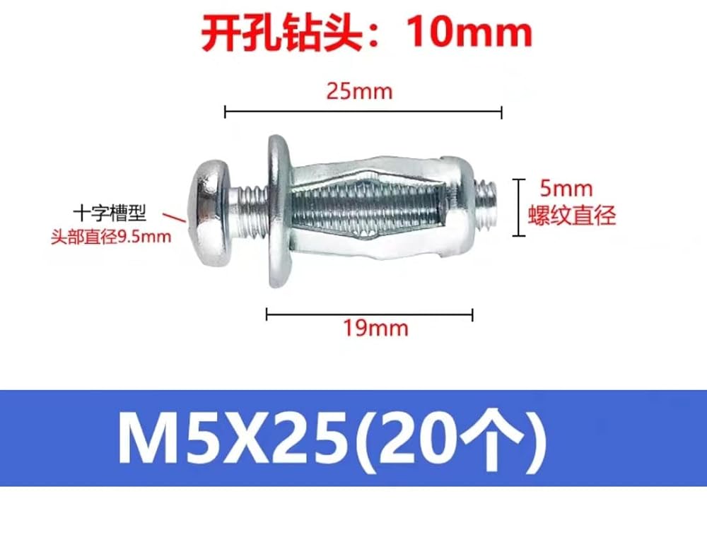 Steps for usage: 1. Drill a hole to the recommended diameter. 2. Tap the anchor into the hole until it is flush with the surface of the substrate. 3. Attach the setting tool to the head of the screw.Squeeze the to expand the anchor.(Small sizes may be set using a screwdriver) 4. Remove the screw and place it through the fixture then back into the anchor. Tighten the screw until the fixture is fixed.