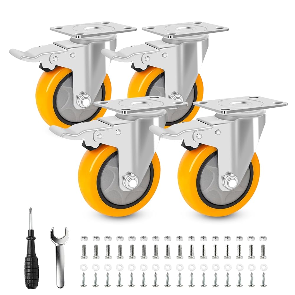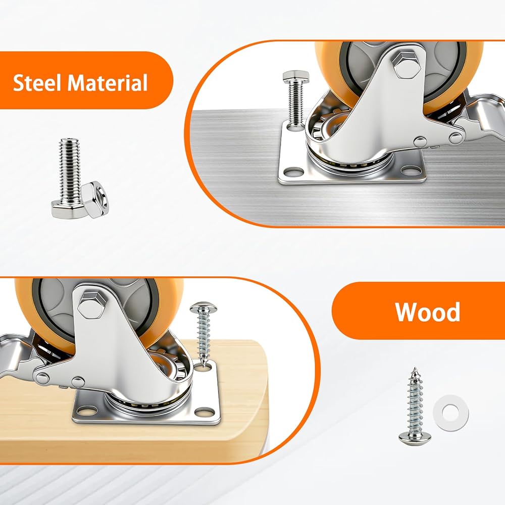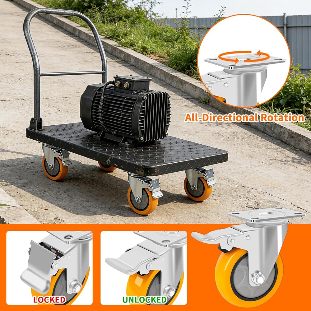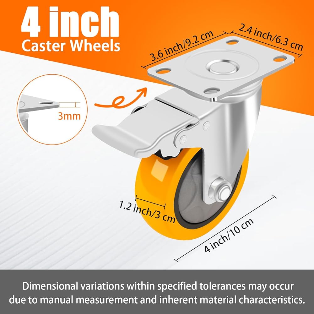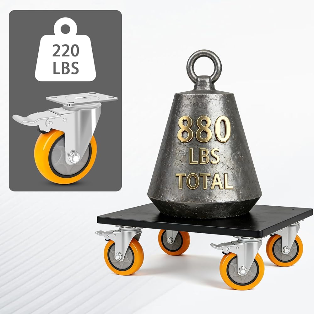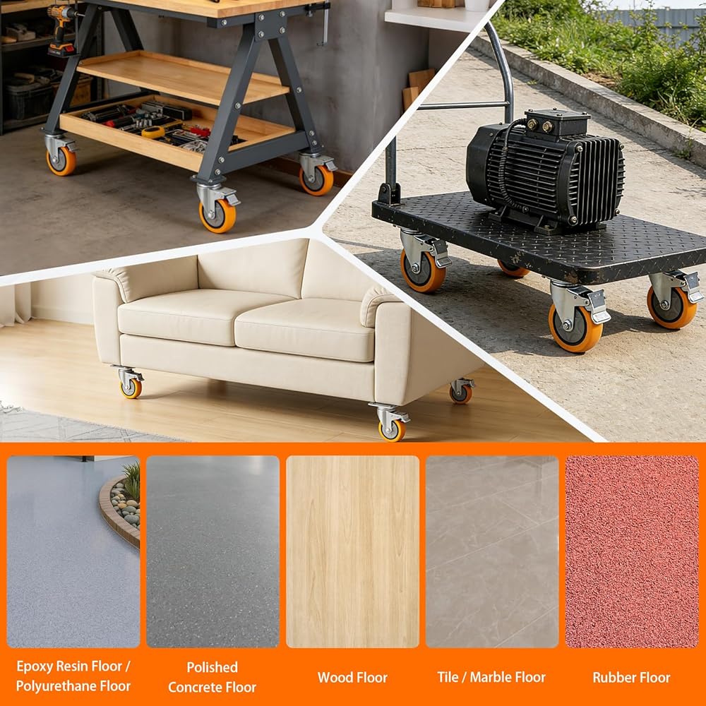 قوة شديدة التحمل: تدعم كل عجلة لوحة 220 رطلاً، مع مجموعة مكونة من 4 عبوات تتعامل بسهولة مع ما يصل إلى 880 رطلاً لعربات الورش والعربات الصناعية والدمى المتحركة