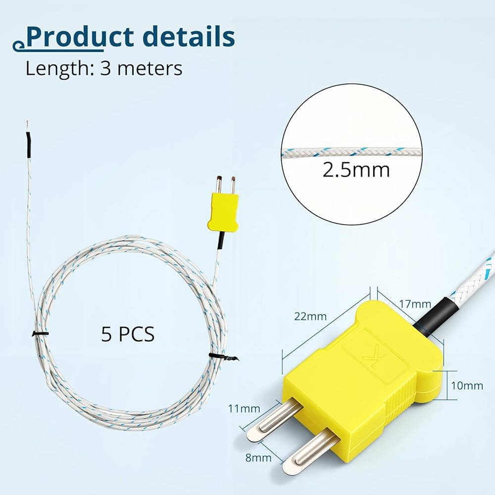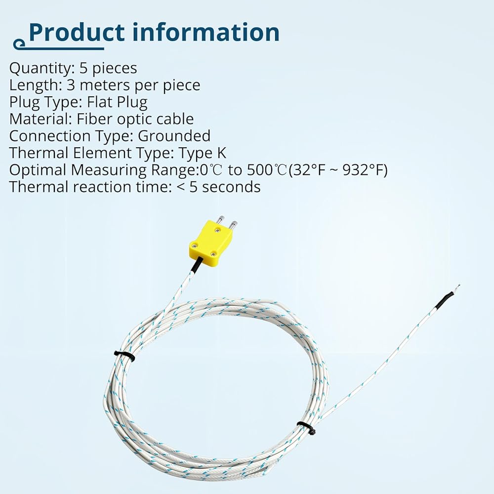 5 عبوات من مجسات 3 أمتار - احصل على 5 أجهزة استشعار حرارية متينة من النوع K، يبلغ طول كل منها 3 أمتار (9.8 قدم). تضمن هذه الحزمة الكبيرة أن يكون لديك دائمًا قطع غيار في متناول اليد لنقاط المراقبة المتعددة أو احتياجات الاستبدال الفورية، مما يوفر لك الوقت والمال في عمليات إعادة الطلب المتكررة.