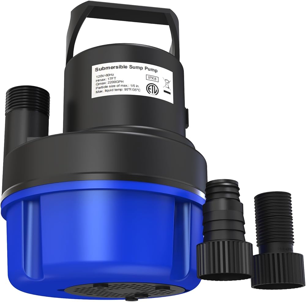 مضخة مياه غاطسة AgiiMan بقوة 2 حصان، مضخة مستنقع محمولة بقدرة 3500 جيجا في الساعة لتصريف حوض السباحة، أزرق