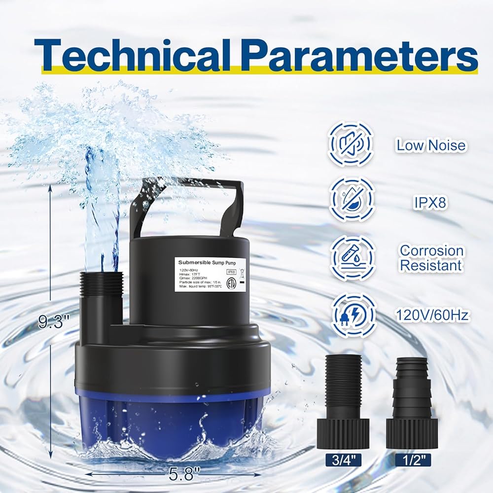 - Efficient Dual-Use Design: Experience ultimate versatility with our dual-use pond pump, engineered to tackle water removal tasks with ease.