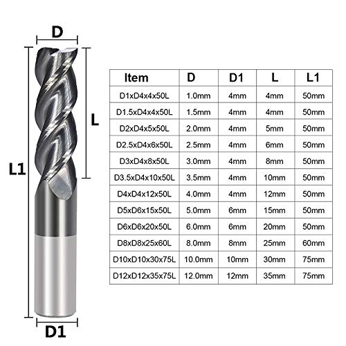 Carbide End Mill 1-12mm 3 Flute End Milling Bit High Performance Milling Cutter for Aluminum Cutting CNC Machine Milling Tool Roughing and Finishing