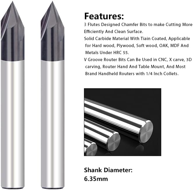 3 Flute Designed Chamfer Bits to make Cutting More Efficiently And Clean Surface.
