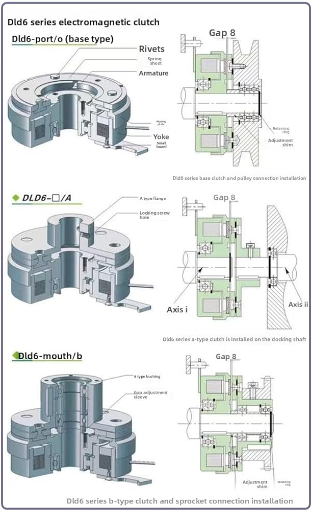 • Stable Performance & Robust Durability This 12/24V DLD6 single plate electromagnetic clutch and brake features a consistent friction coefficient, enabling high-frequency and high-energy operation in industrial settings. Its sturdy construction resists wear and tear from prolonged use, ensuring reliable performance even under heavy-duty working conditions.